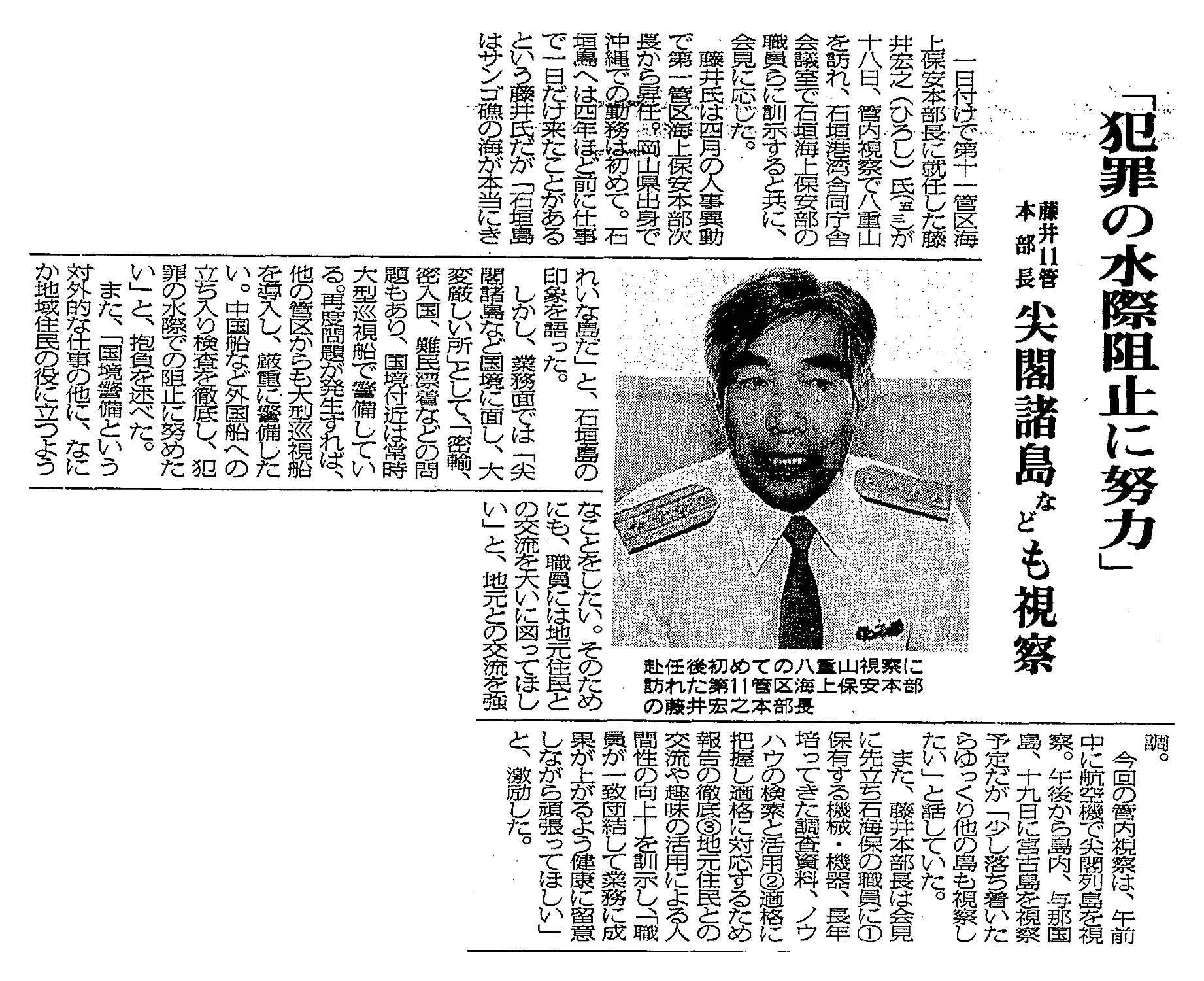 > 「犯罪の水際阻止に努力」 藤井11管本部長 尖閣列島なども視察: