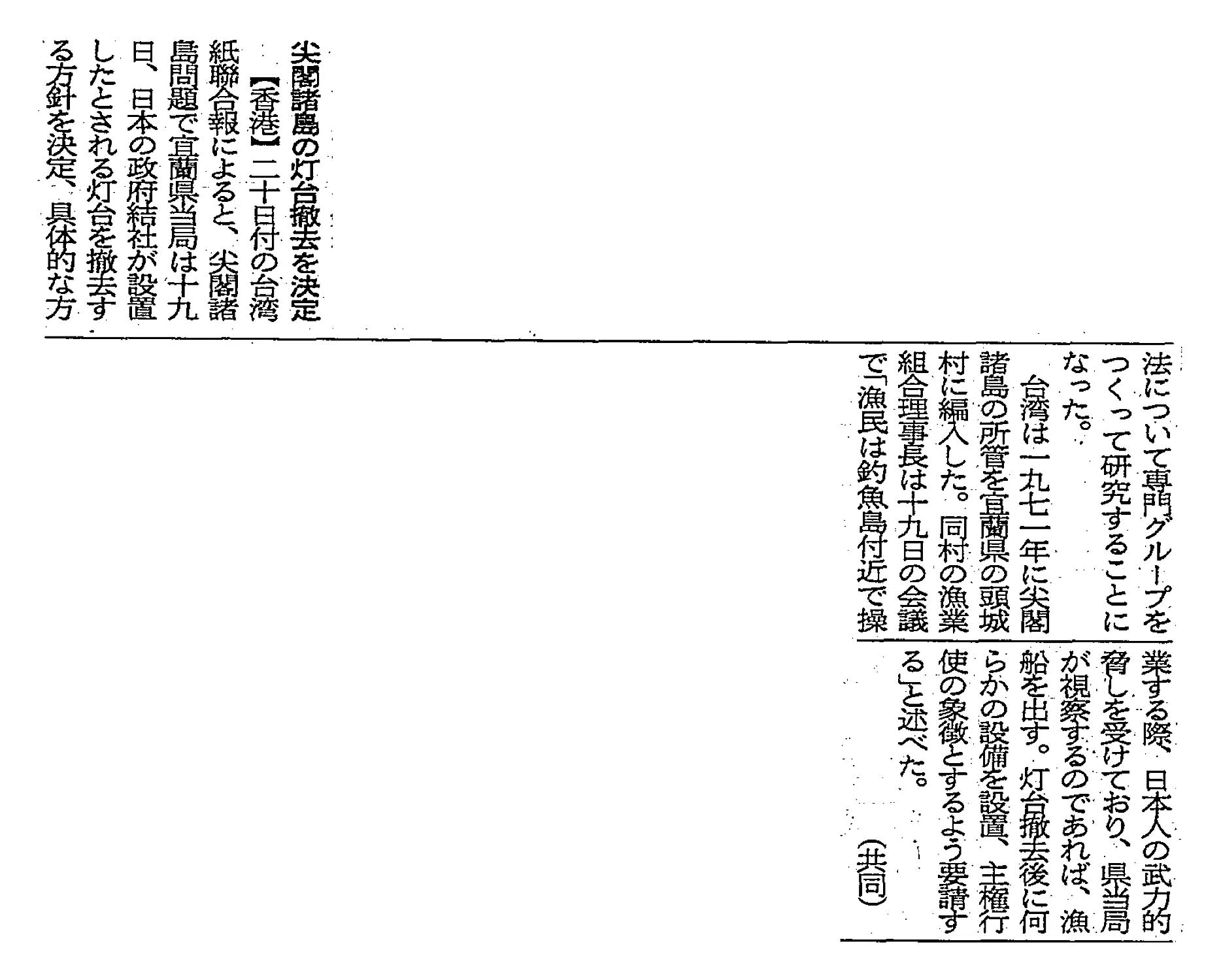 > 尖閣諸島の灯台撤去を決定: