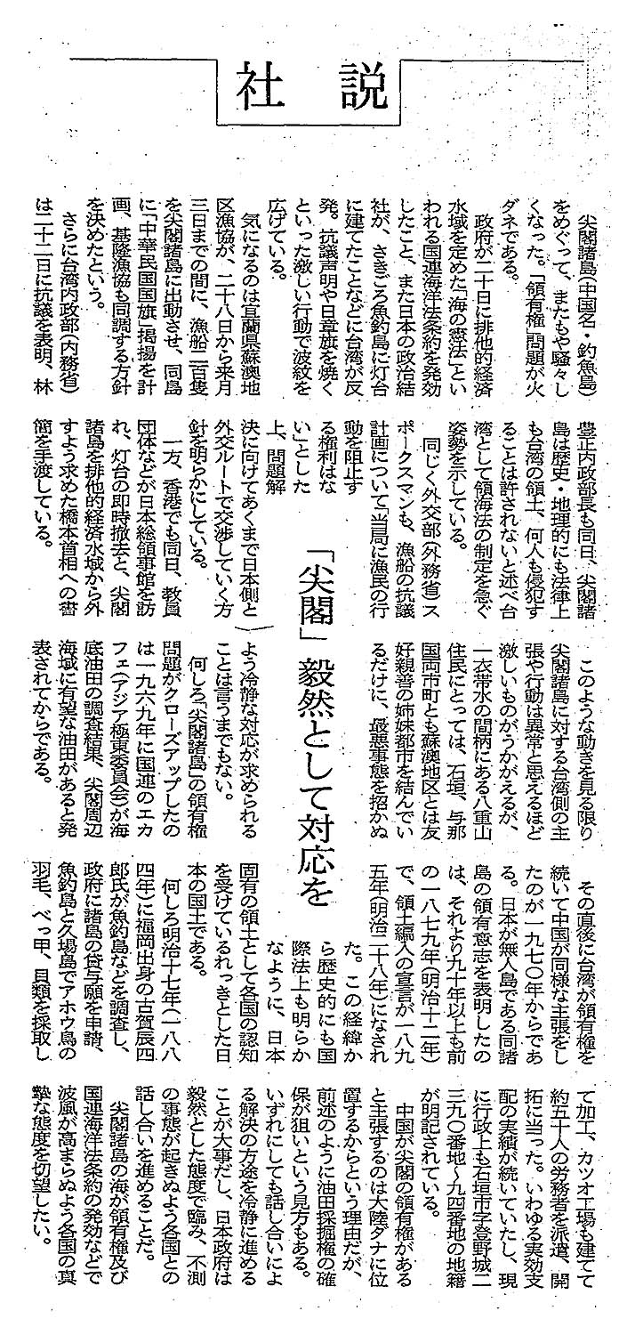 <社説>「尖閣」毅然として対応を