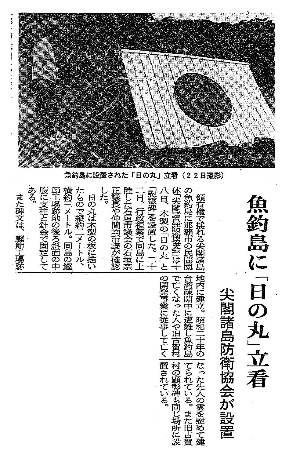 > 魚釣島に「日の丸」立看/尖閣諸島防衛協会が設置: