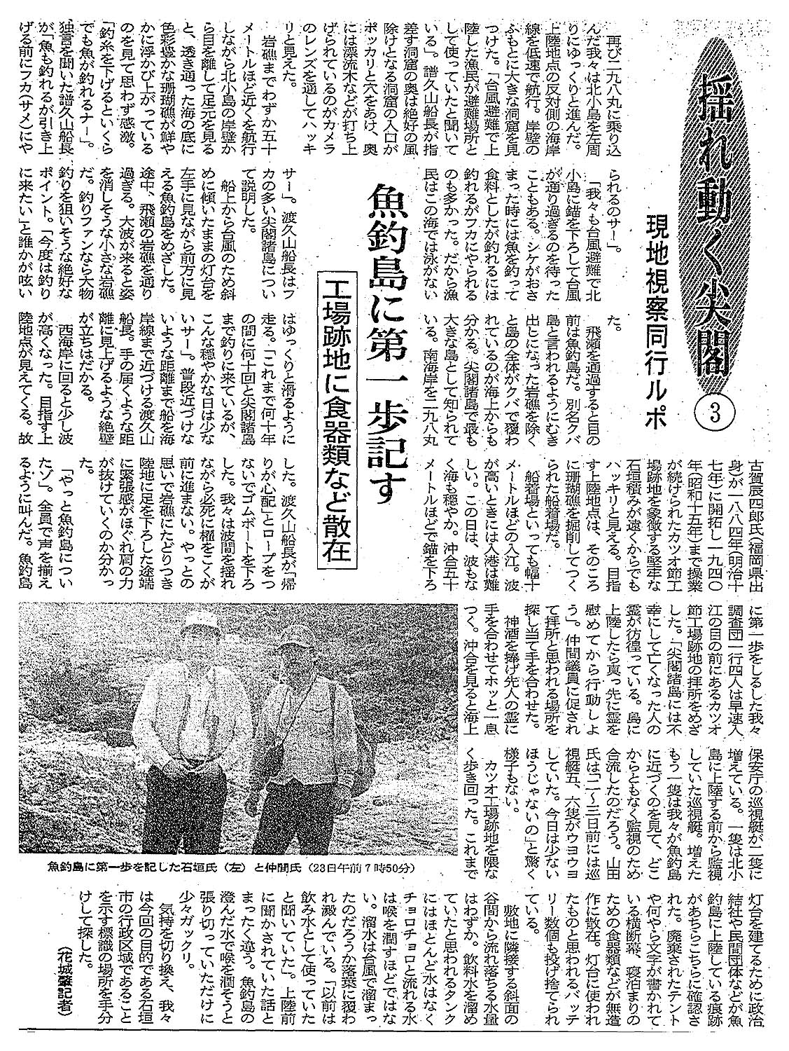 <揺れ動く尖閣>現地視察同行ルポ③ /魚釣島に第一歩記す/工場跡地に食器類など散在