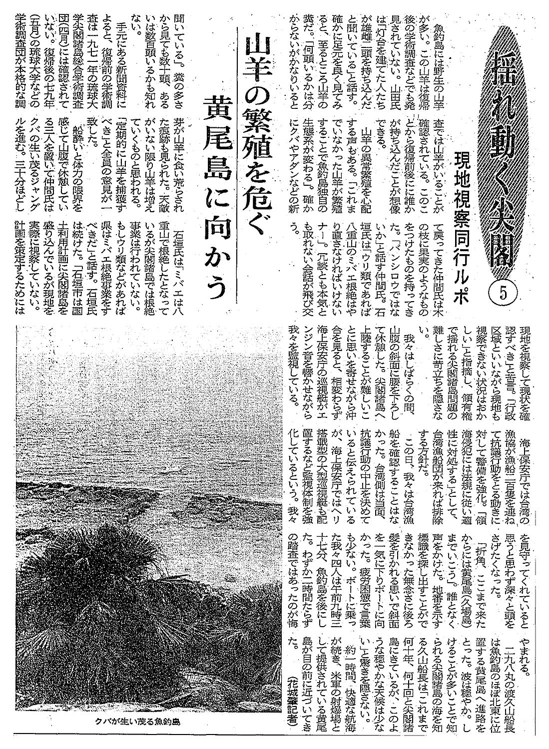 > <揺れ動く尖閣>現地視察同行ルポ⑤ /山羊の繁殖を危ぐ 黄尾島に向かう :