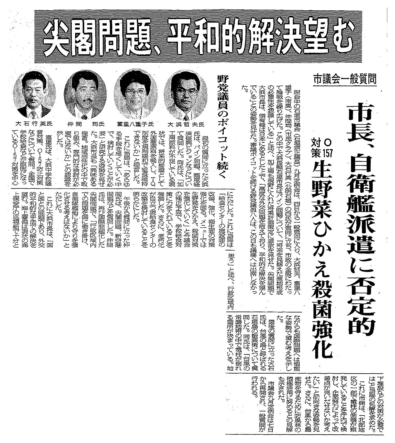 尖閣問題、平和的解決望む/市議会一般質問/市長、自衛艦派遣に否定的/O157対策生野菜ひかえ殺菌強化/野党議員のボイコット続く 現代仮名遣いテキスト