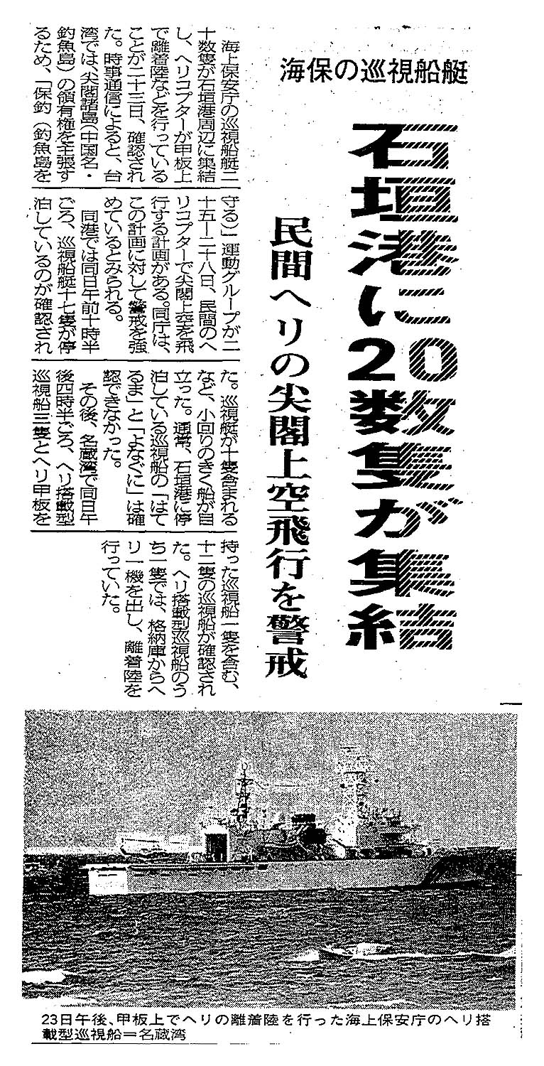 > 海保の巡視船艇/石垣港に20数隻が集結/民間ヘリの尖閣上空飛行を警戒 :