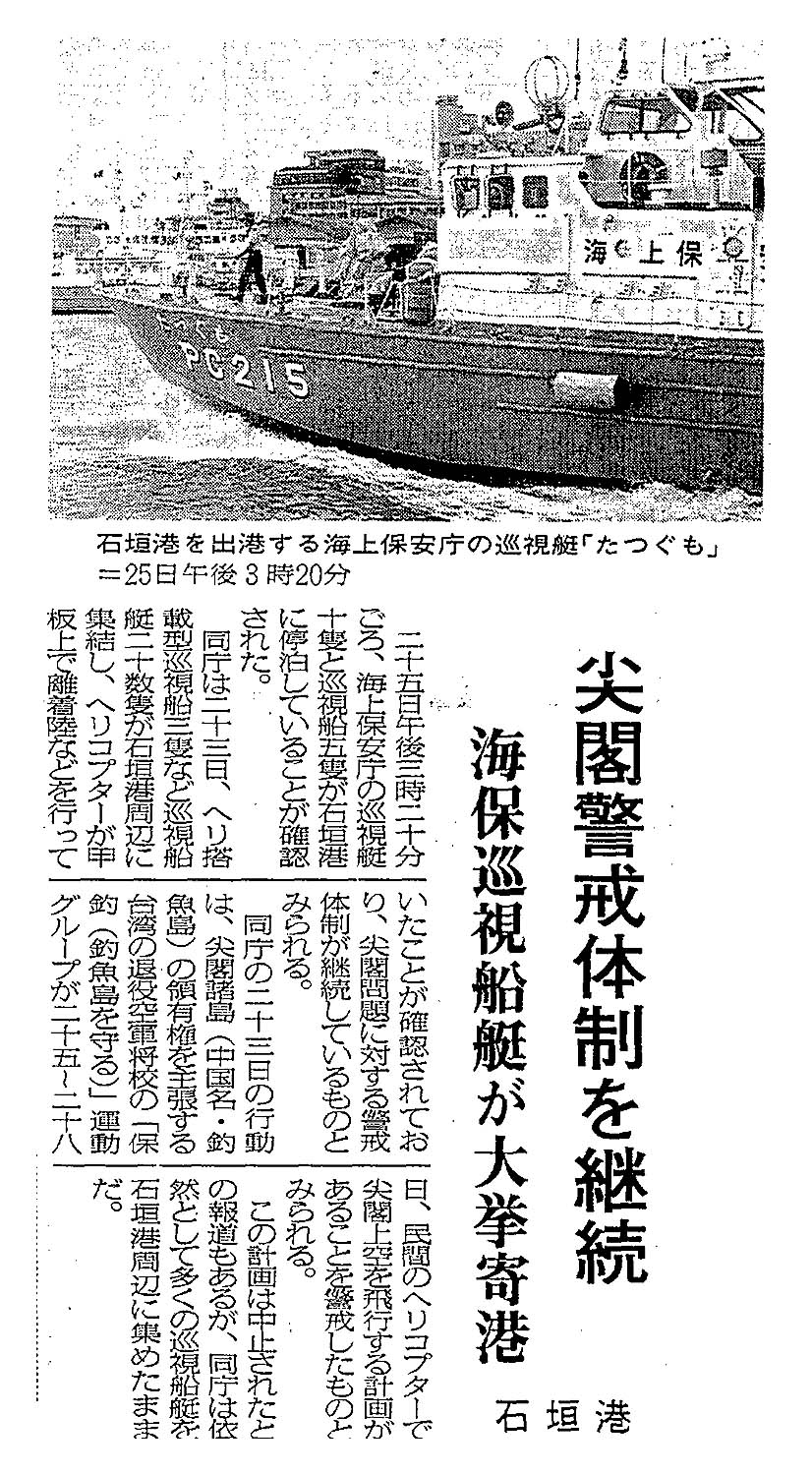 > 石垣港/尖閣警戒体制を継続/海保巡視船艇が大挙寄港: