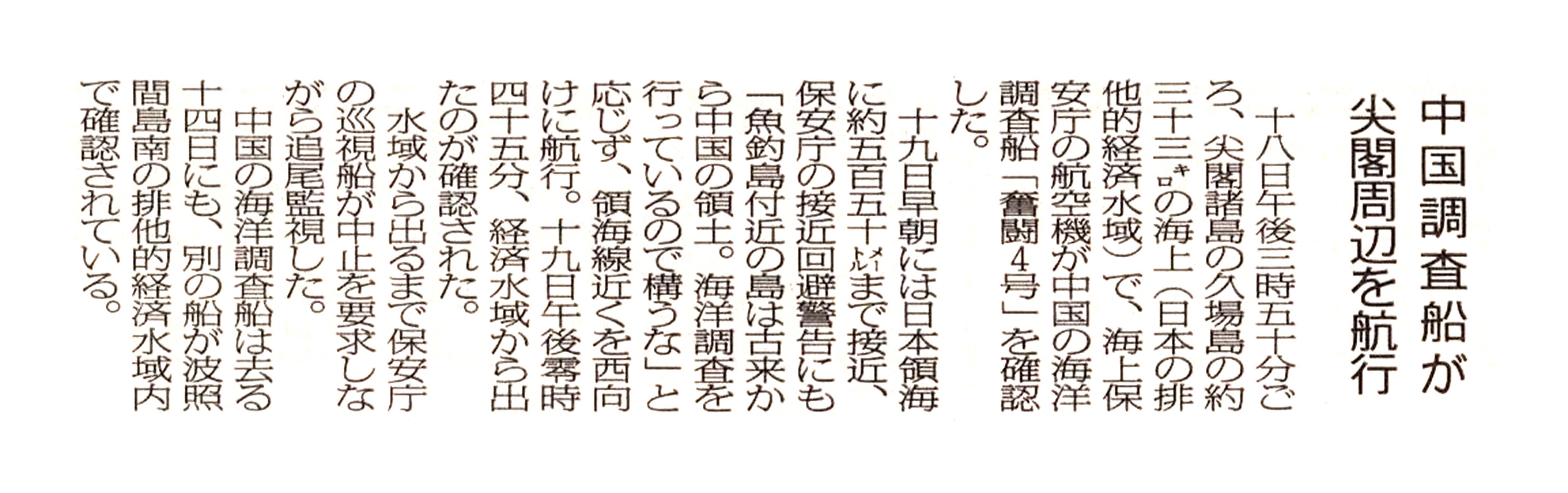 > 中国の海洋調査船が尖閣周辺を航行: