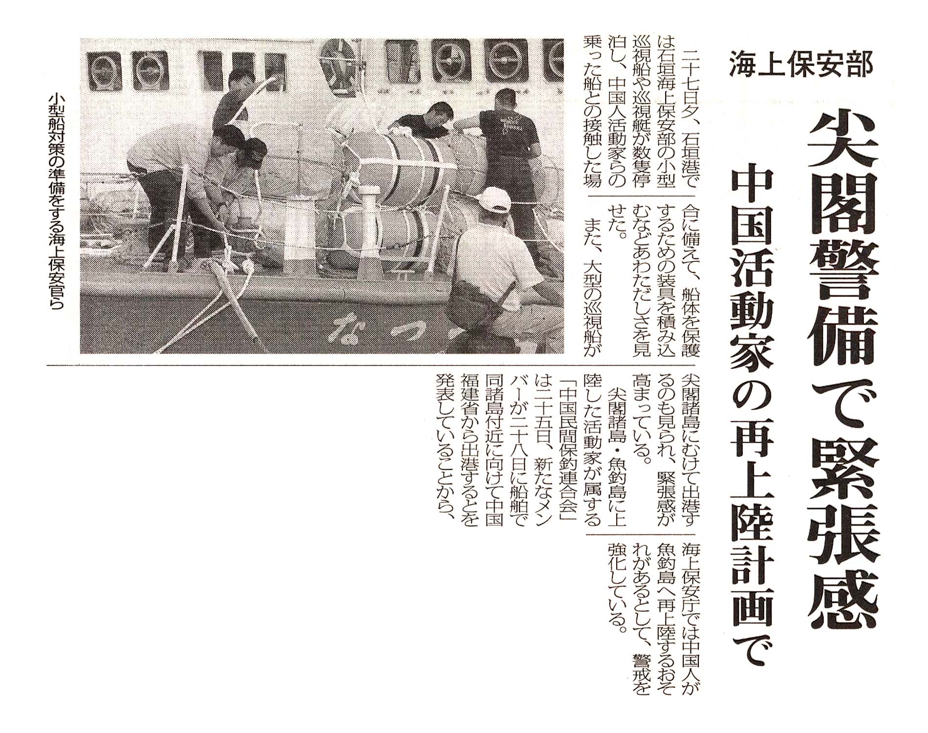 > 海上保安部/尖閣警備で緊張感/中国活動家の再上陸計画で: