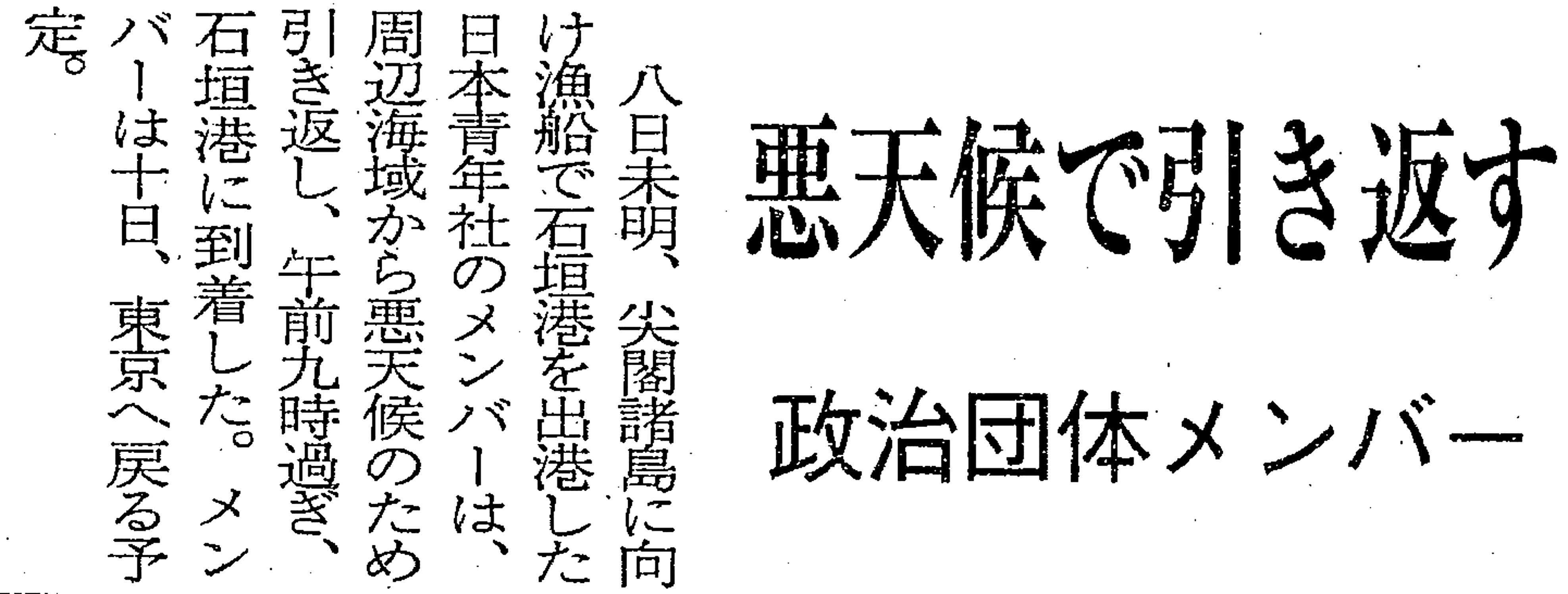 > 悪天候で引き返す/政治団体メンバー:
