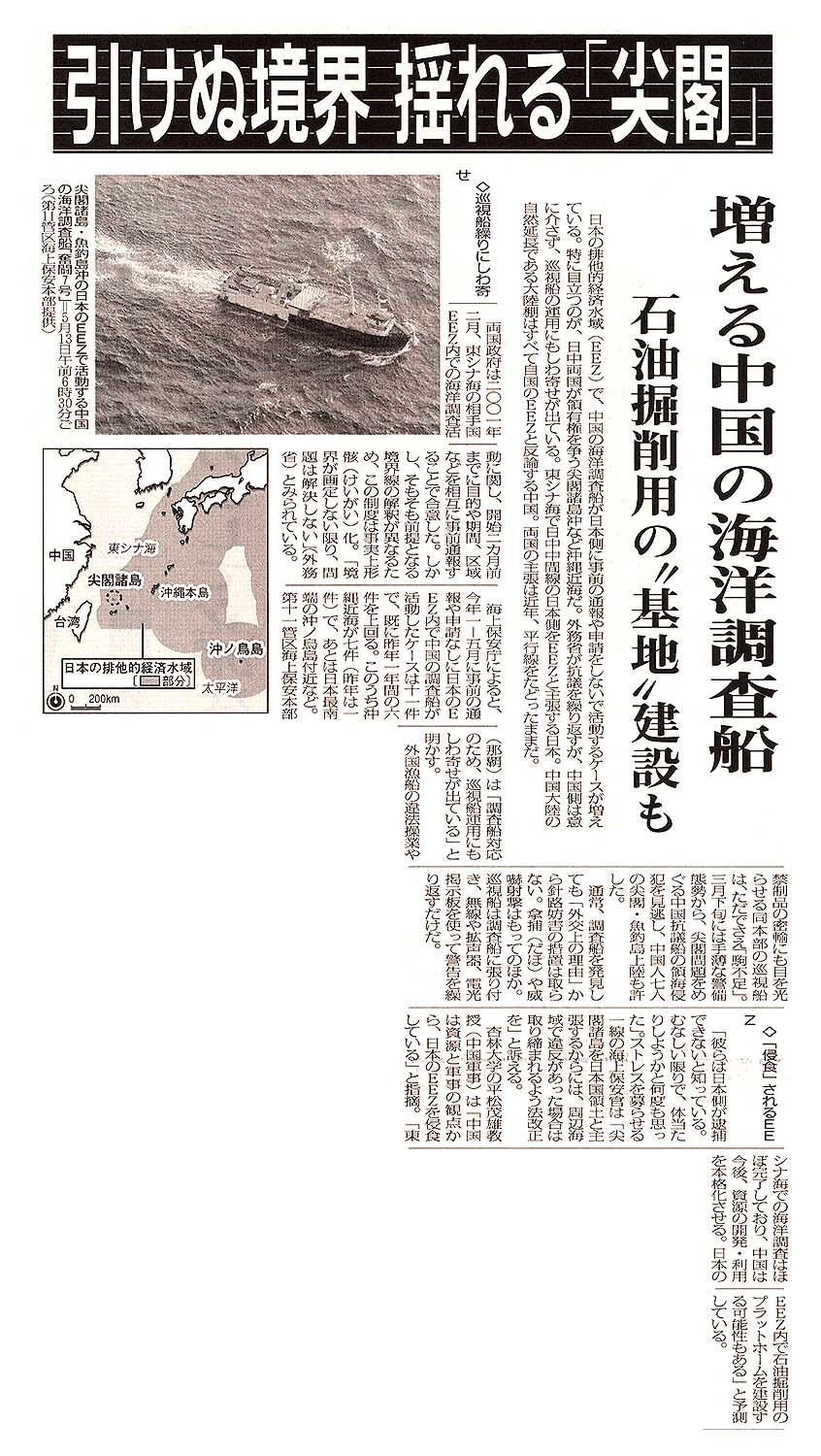 > 引けぬ境界 揺れる「尖閣」/増える中国の海洋調査船/石油掘削用の”基地”建設も: