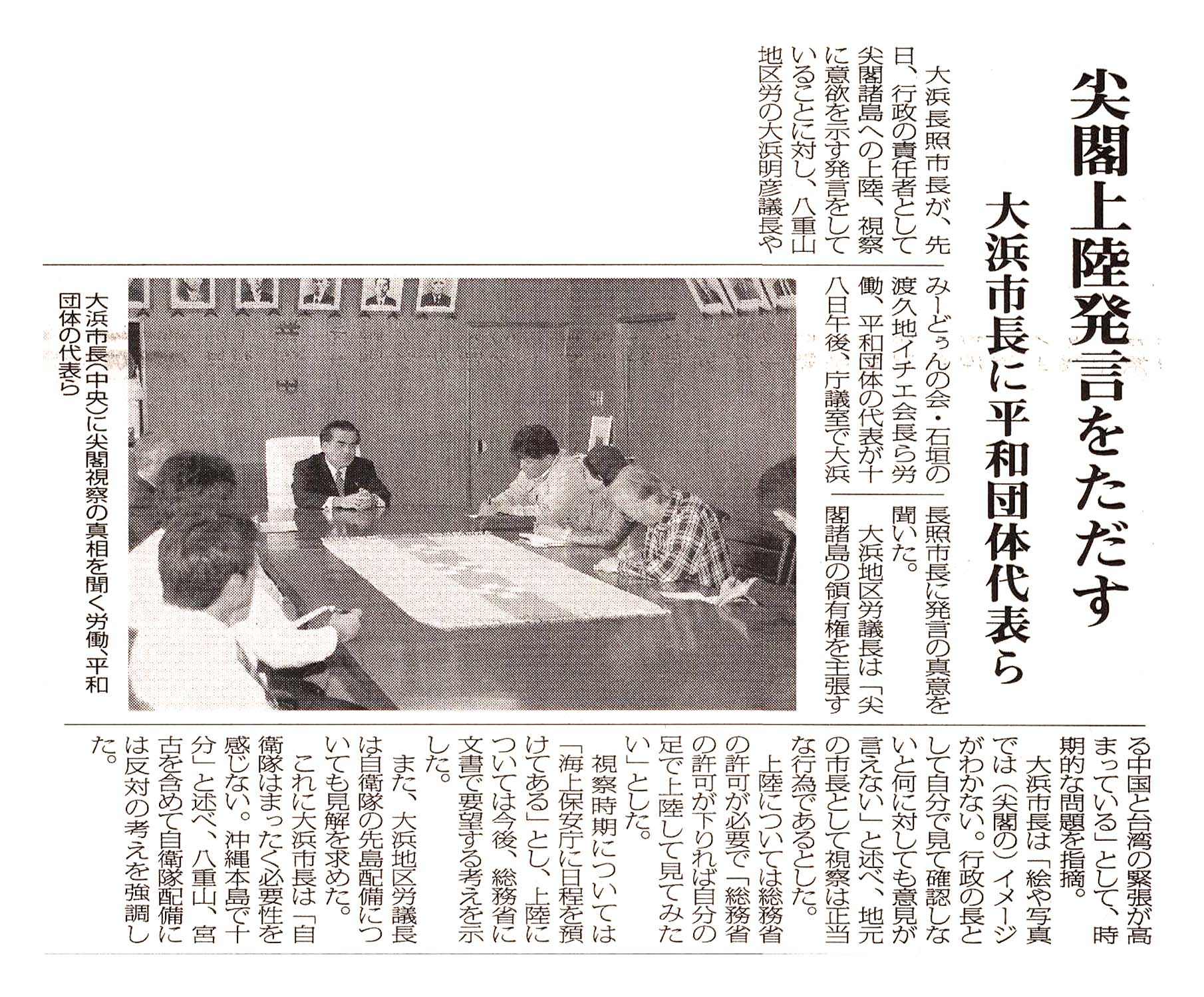 > 尖閣上陸発言をただす/大浜市長に平和団体代表ら: