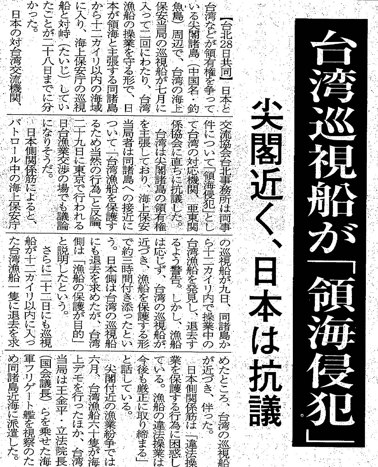 > 台湾巡視船が「領海侵犯」/尖閣近く、日本は抗議: