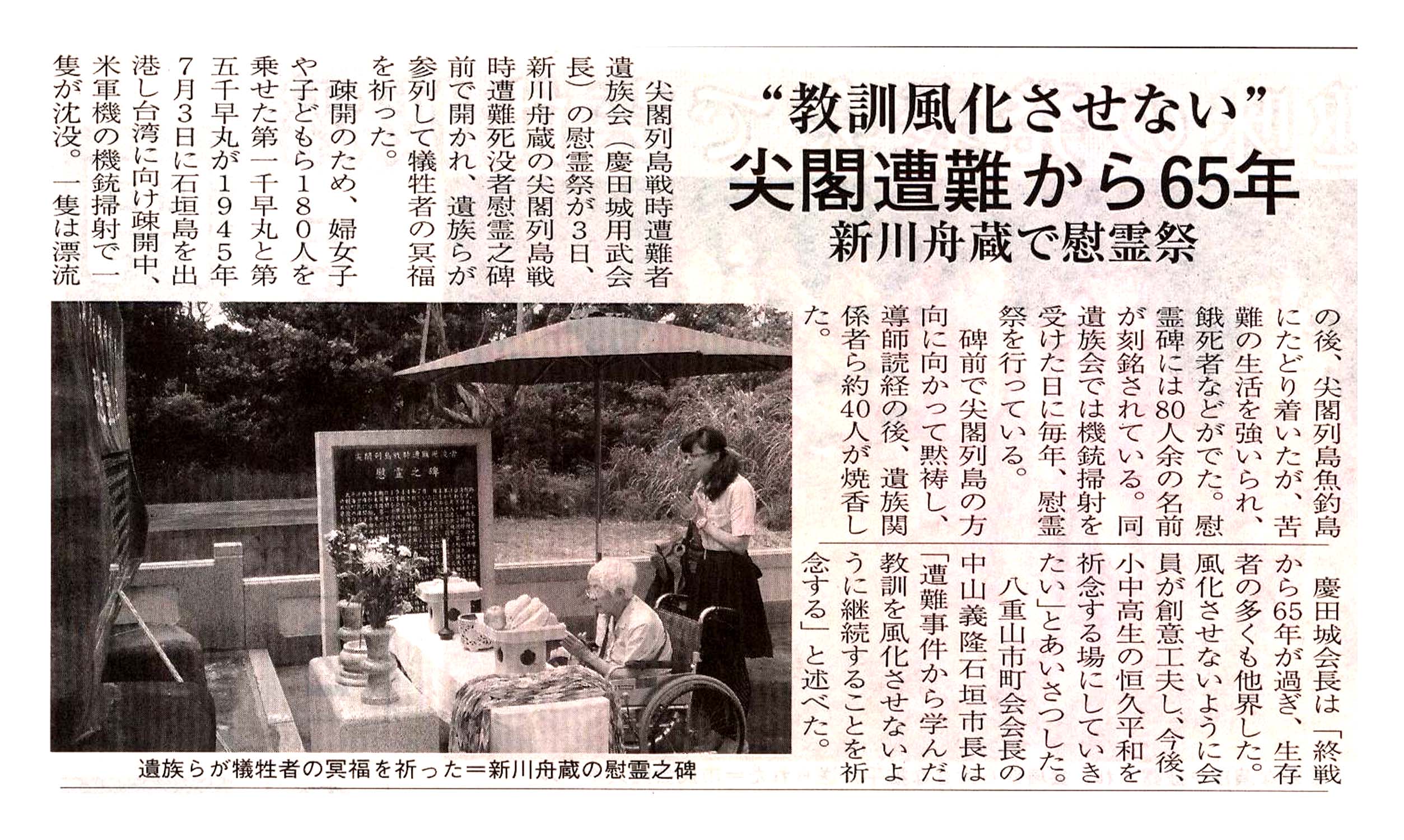 > ”教訓風化させない”/尖閣遭難から65年/新川舟蔵で慰霊祭: