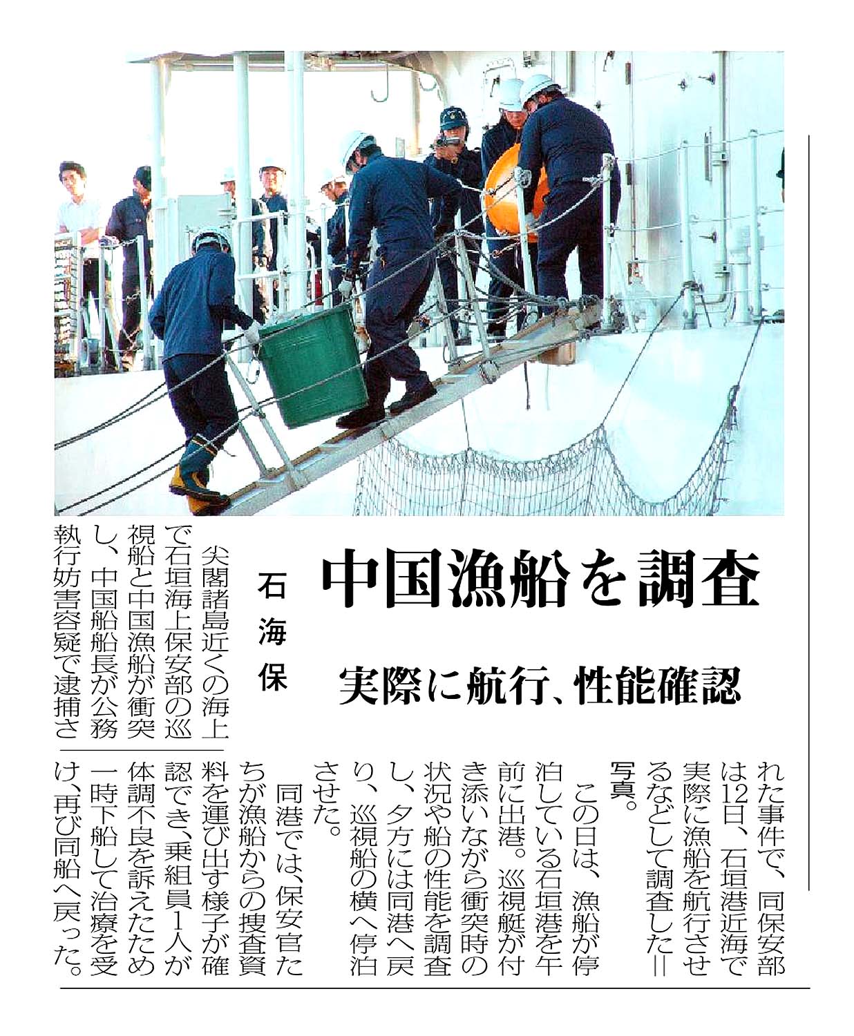 > 中国漁船を調査//実際に航行、性能確認/石海保: