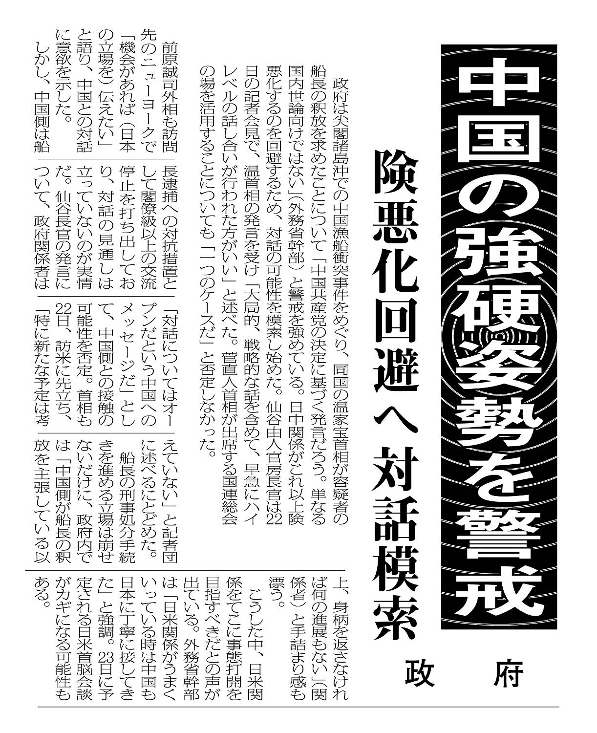 > 中国の強硬姿勢を警戒/険悪化回避へ対話模索/政府 :