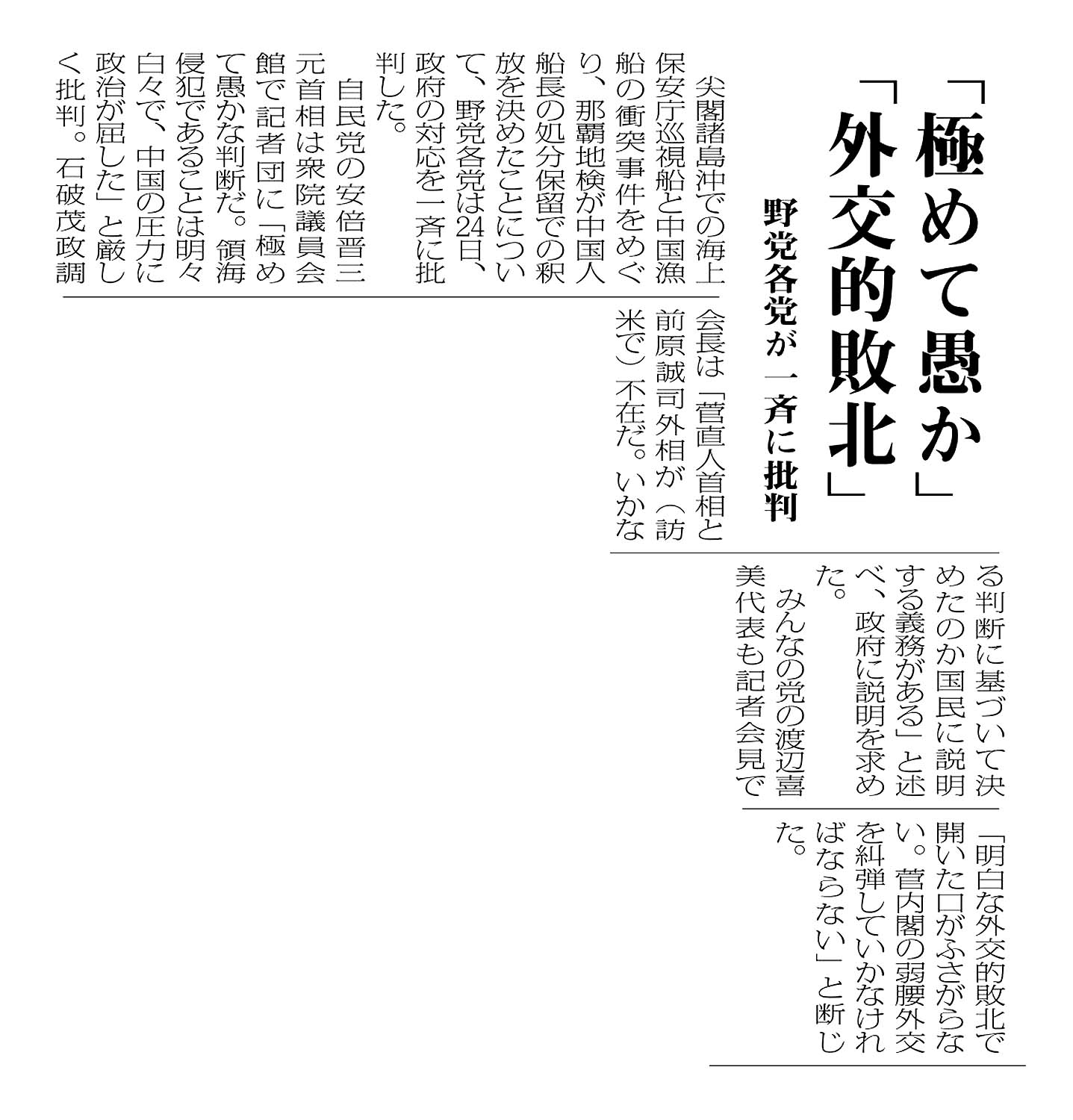 > 「極めて愚か」「外交的敗北」/野党各党が一斉に批判: