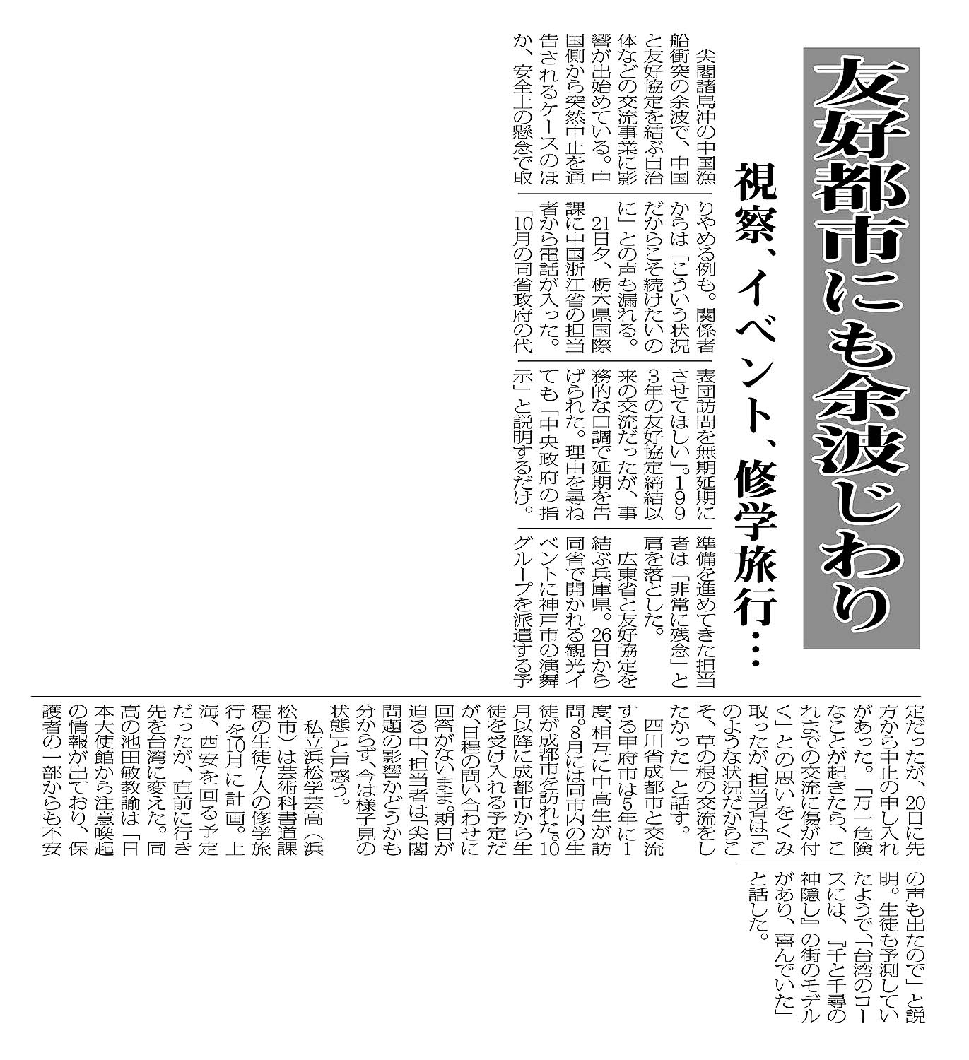 > 友好都市にも余波じわり/視察、イベント、修学旅行・・・: