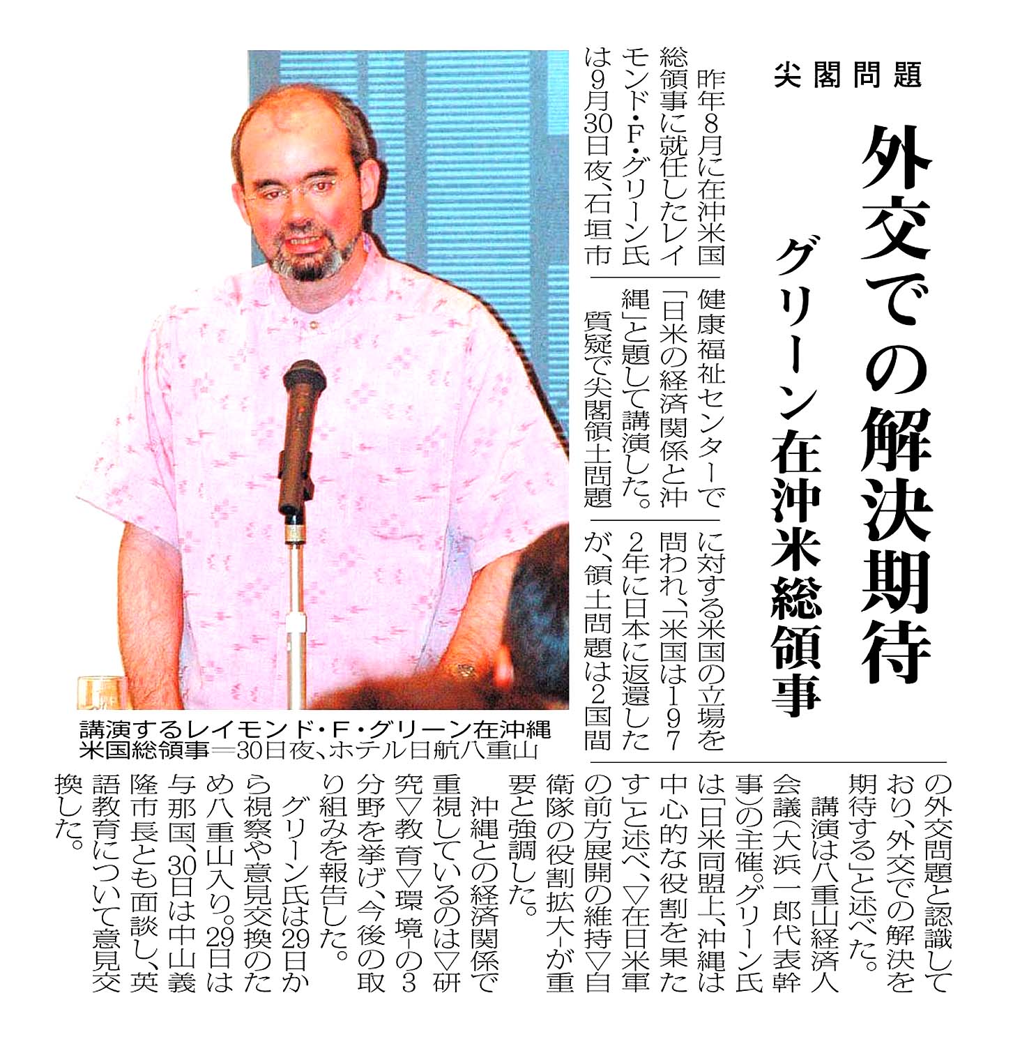 > 尖閣問題/外交での解決期待/グリーン在沖米総領事 :