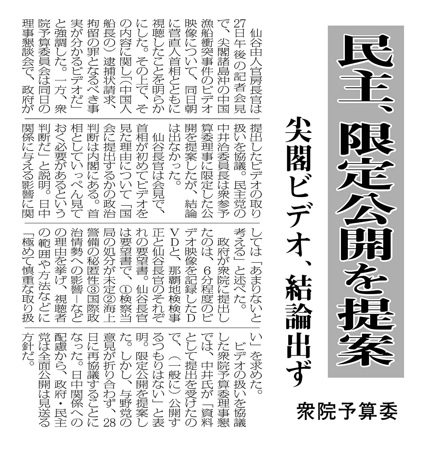 > 民主、限定公開を提案/尖閣ビデオ、結論出ず/衆院予算委: