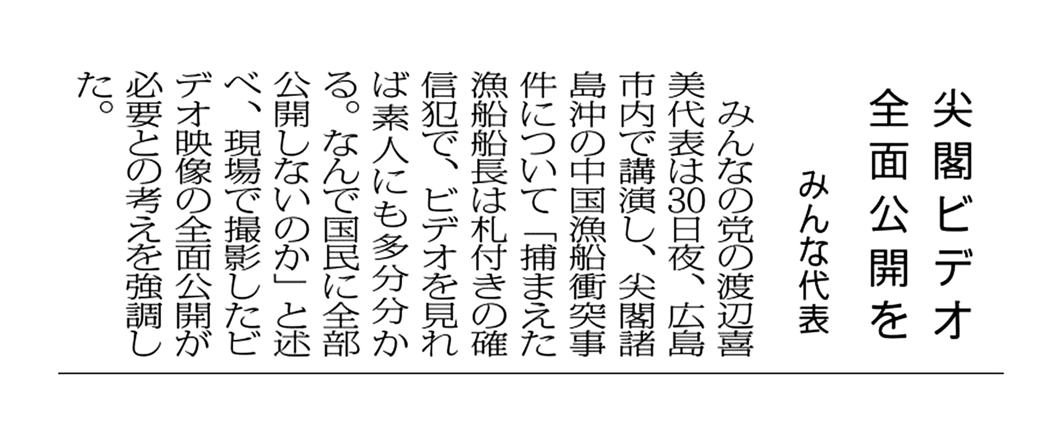 > 尖閣ビデオ全面公開を/みんな代表: