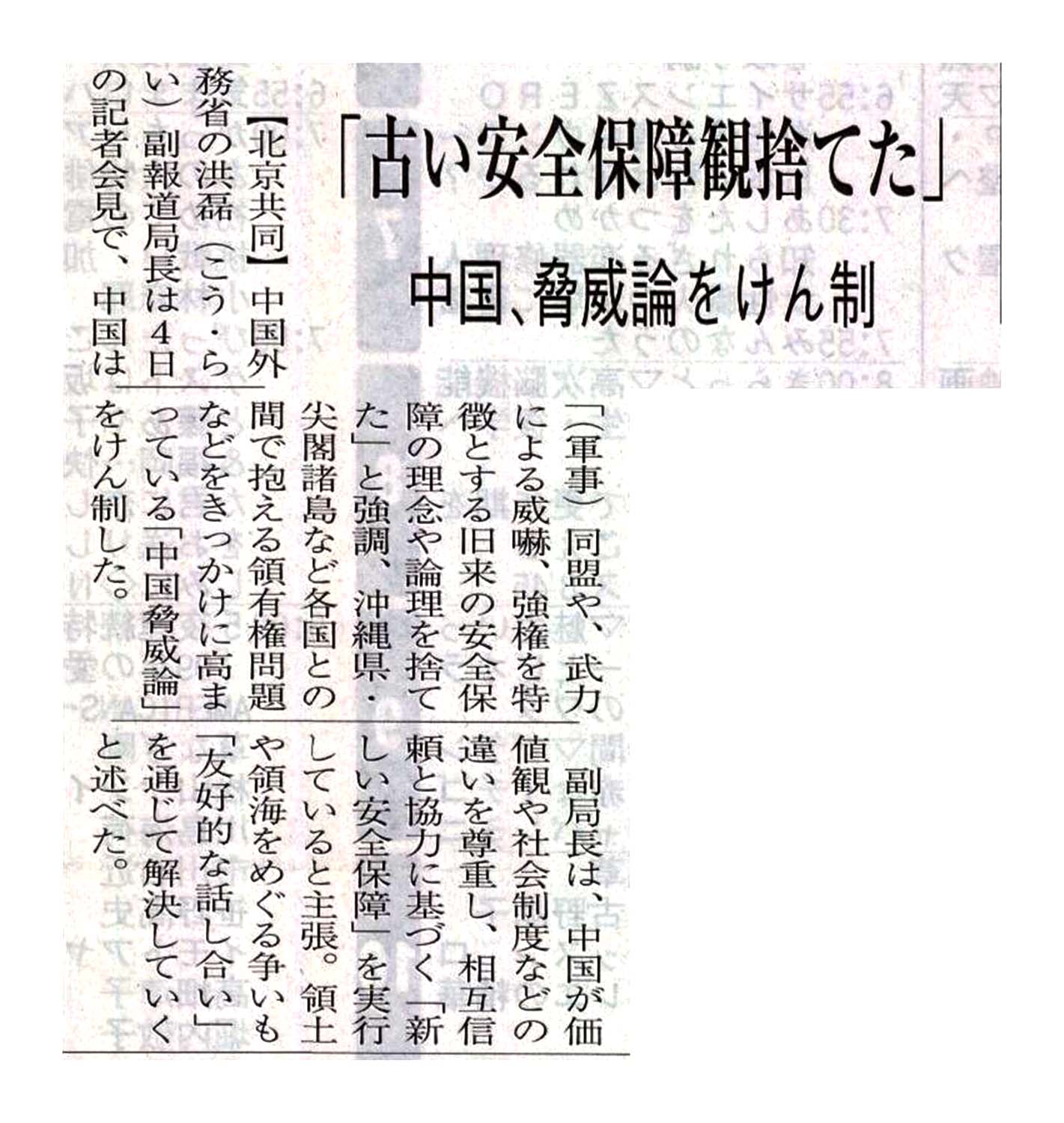 「古い安全保障観捨てた」中国、脅威論をけん制