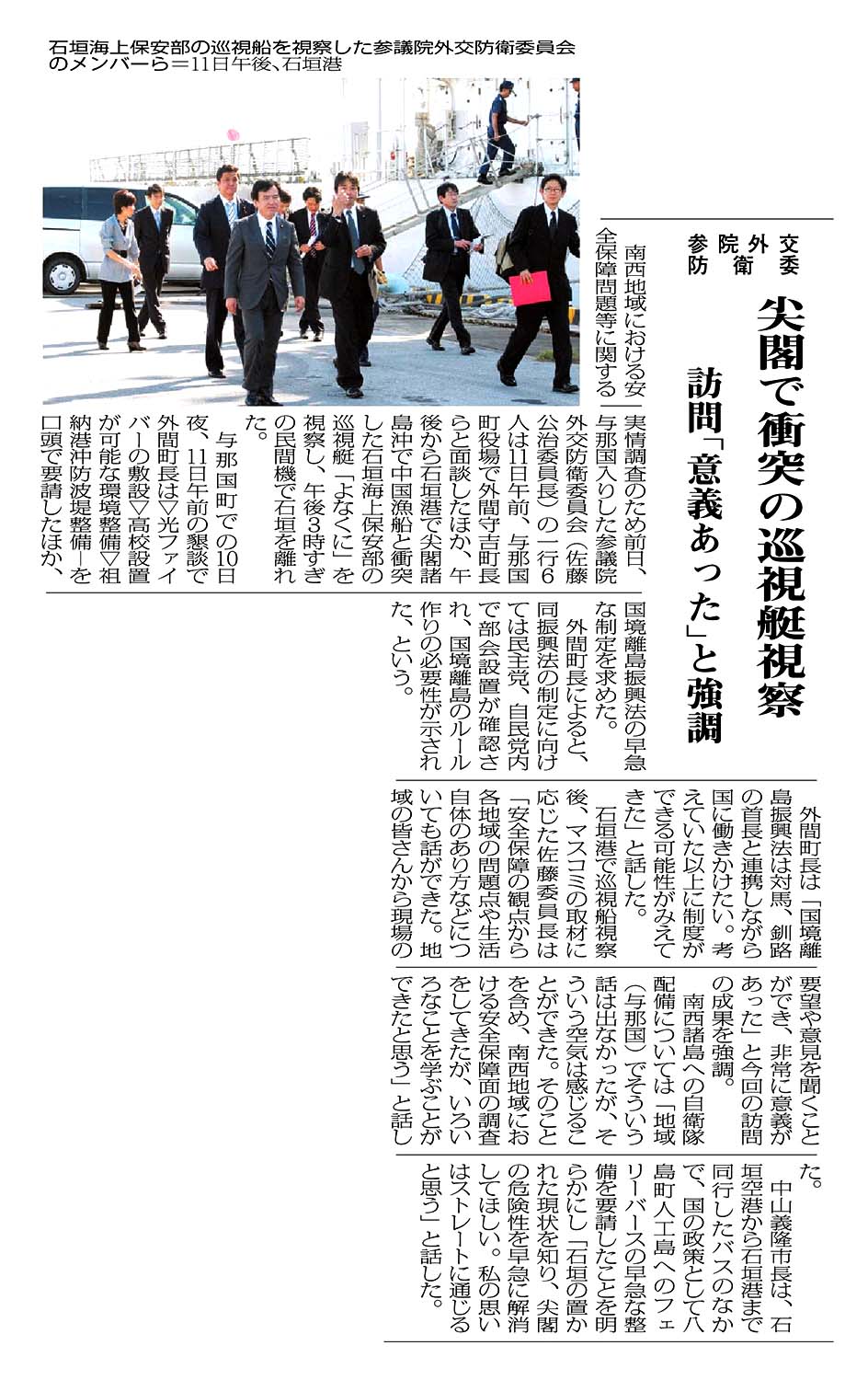 > 参院外交防衛委/尖閣で衝突の巡視艇視察/訪問「意義あった」と強調: