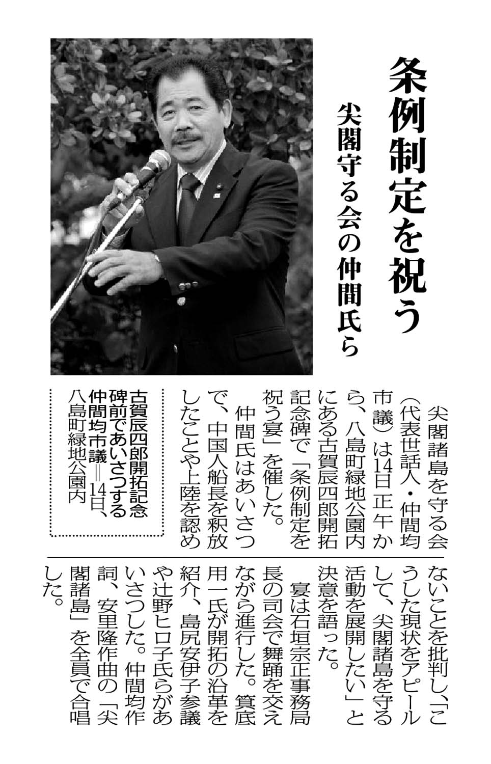 > 条例制定を祝う/尖閣守る会の仲間氏ら: