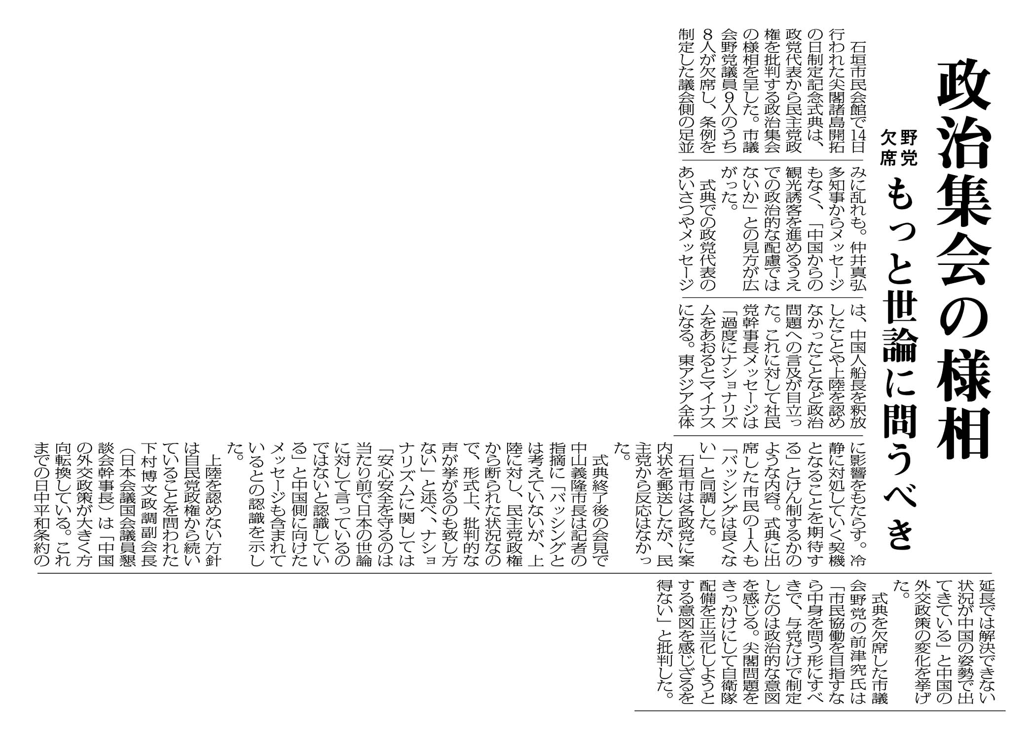 > 政治集会の様相/野党欠席/もっと世論に問うべき:
