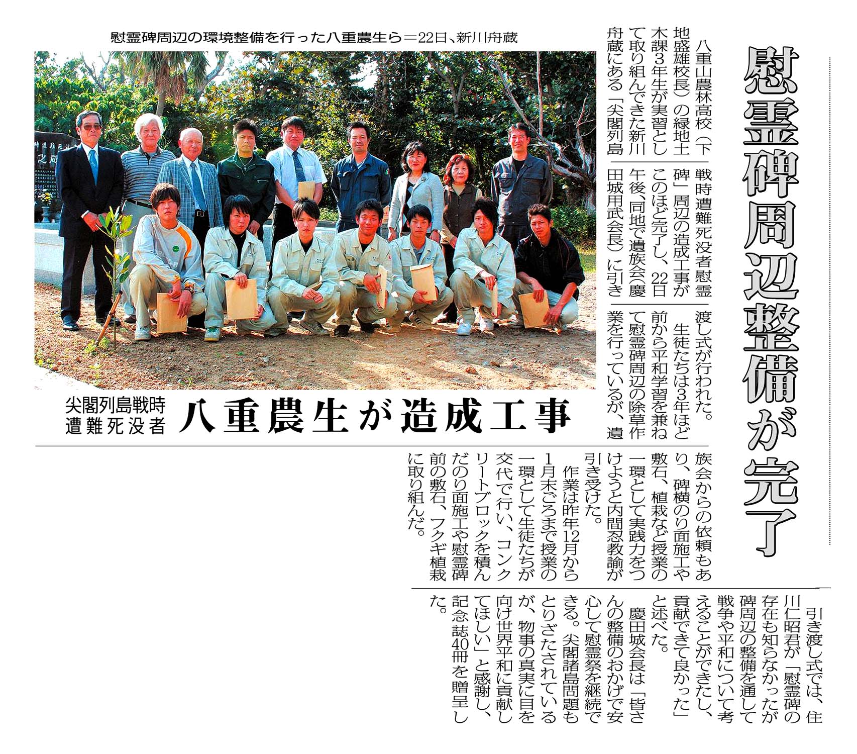 > 慰霊碑周辺整備が完了/尖閣列島戦時遭難死没者/八重農生が造成工事: