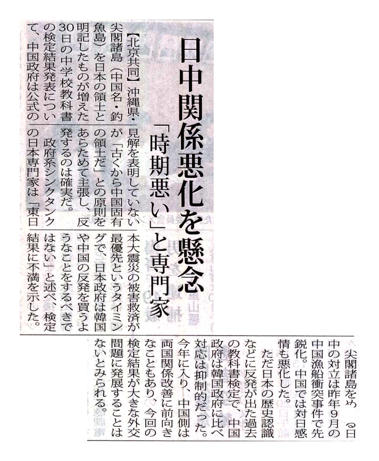 > 日中関係悪化を懸念/「時期悪い」と専門家: