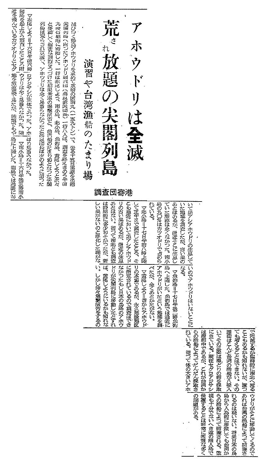 > アホウドリは全滅/荒され放題の尖閣列島/演習や台湾漁船のたまり場/調査団寄港: