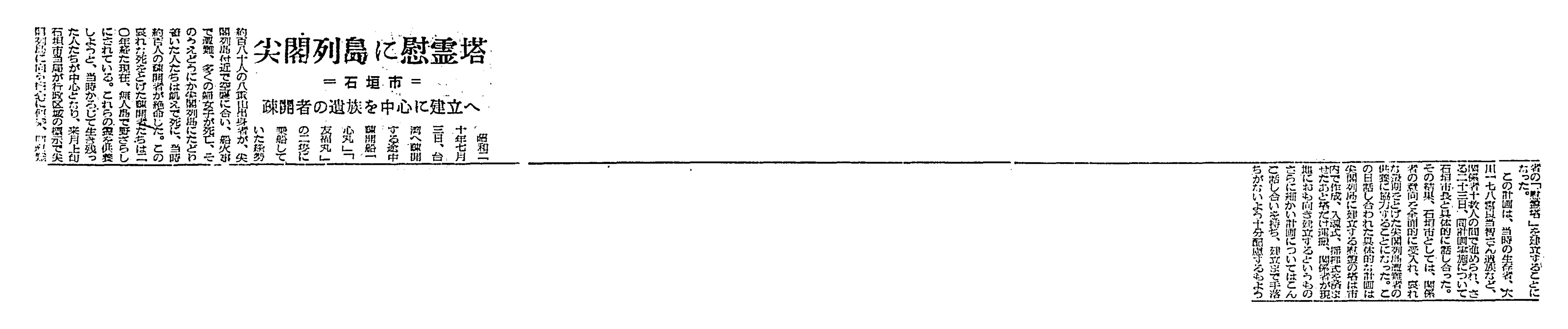 > 尖閣列島に慰霊塔 石垣市が疎開者の遺族を中心に建立へ: