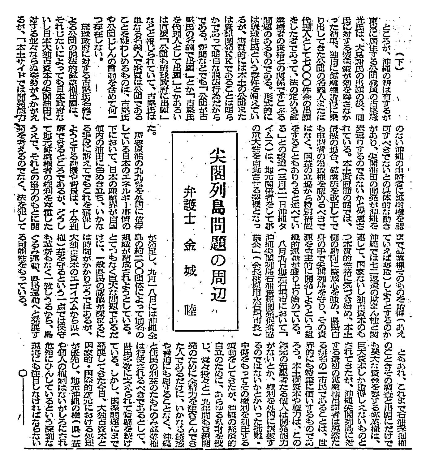 尖閣列島問題の周辺 (下) /弁護士 金城睦
