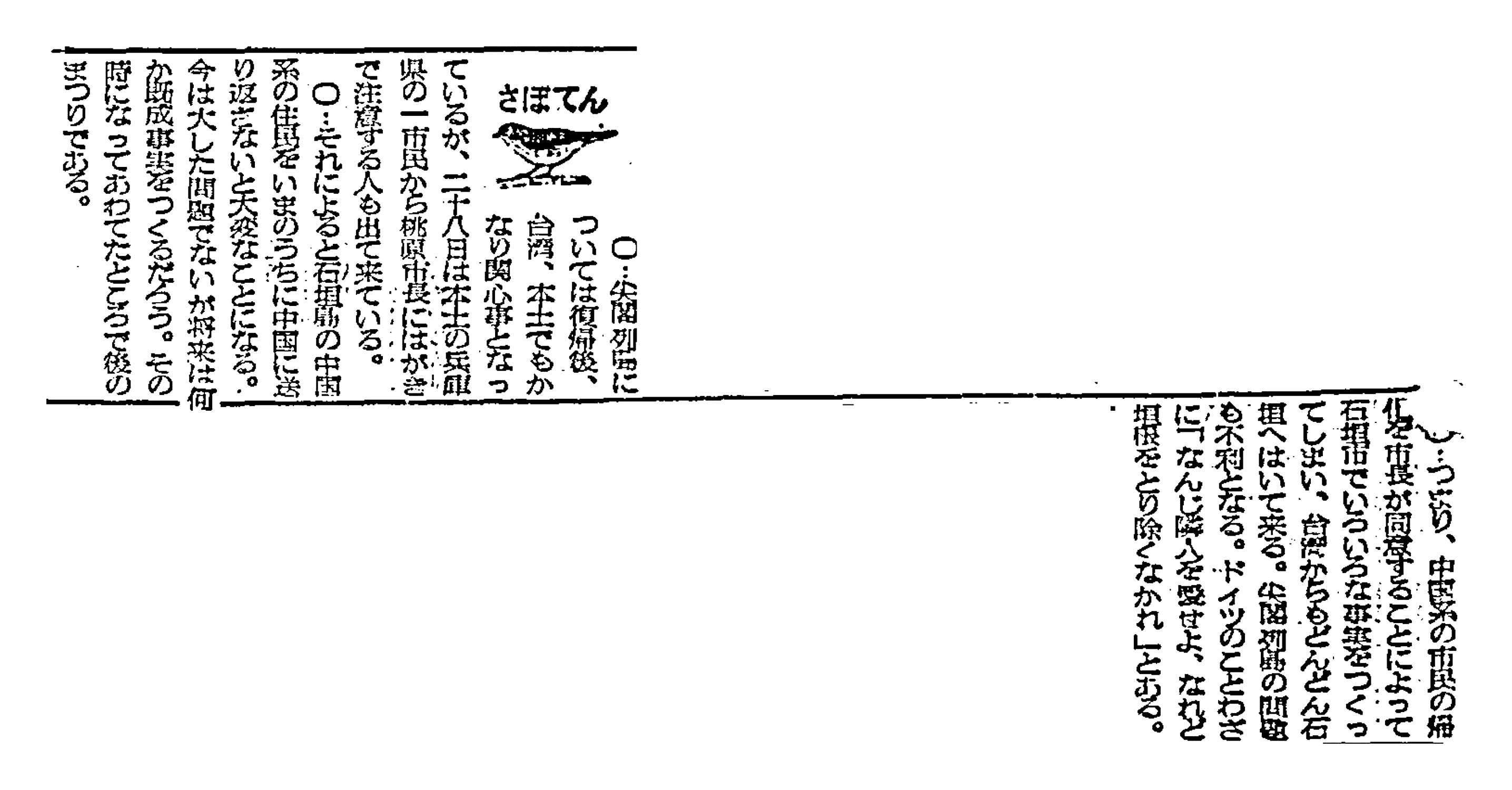 > < さぼてん > 尖閣列島問題に兵庫県の一市民から注意のはがき届く: