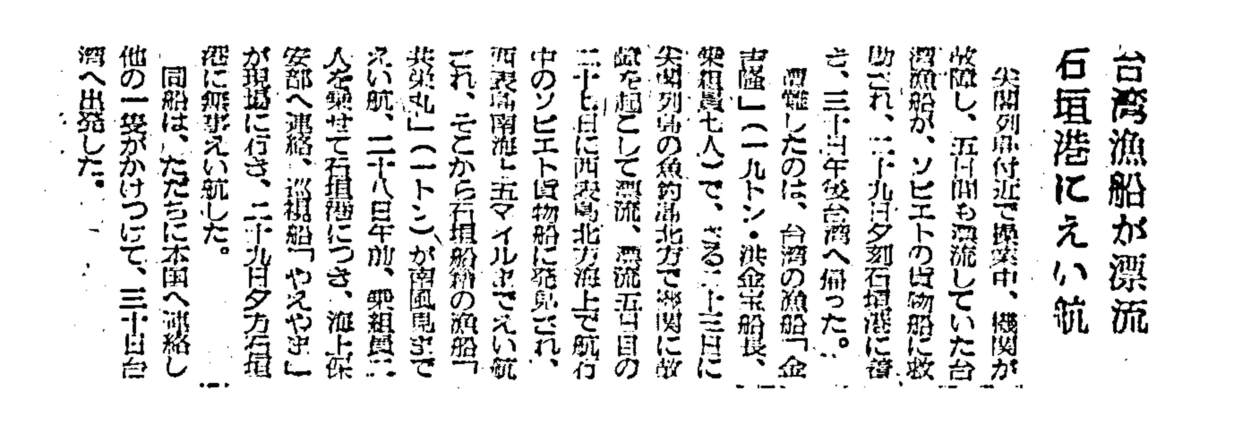 > 台湾漁船が漂流/石垣港にえい航: