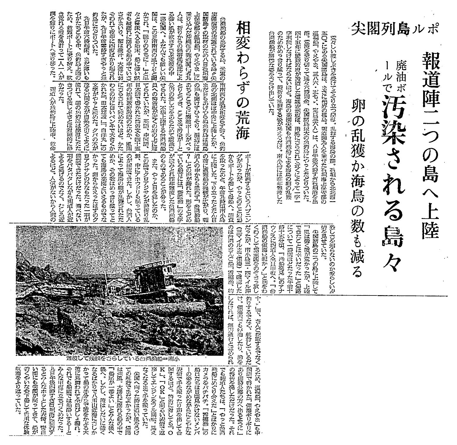 > 尖閣列島ルポ/報道陣二つの島へ上陸/廃油ボールで汚染される島々/卵乱獲か海鳥の数も減る: