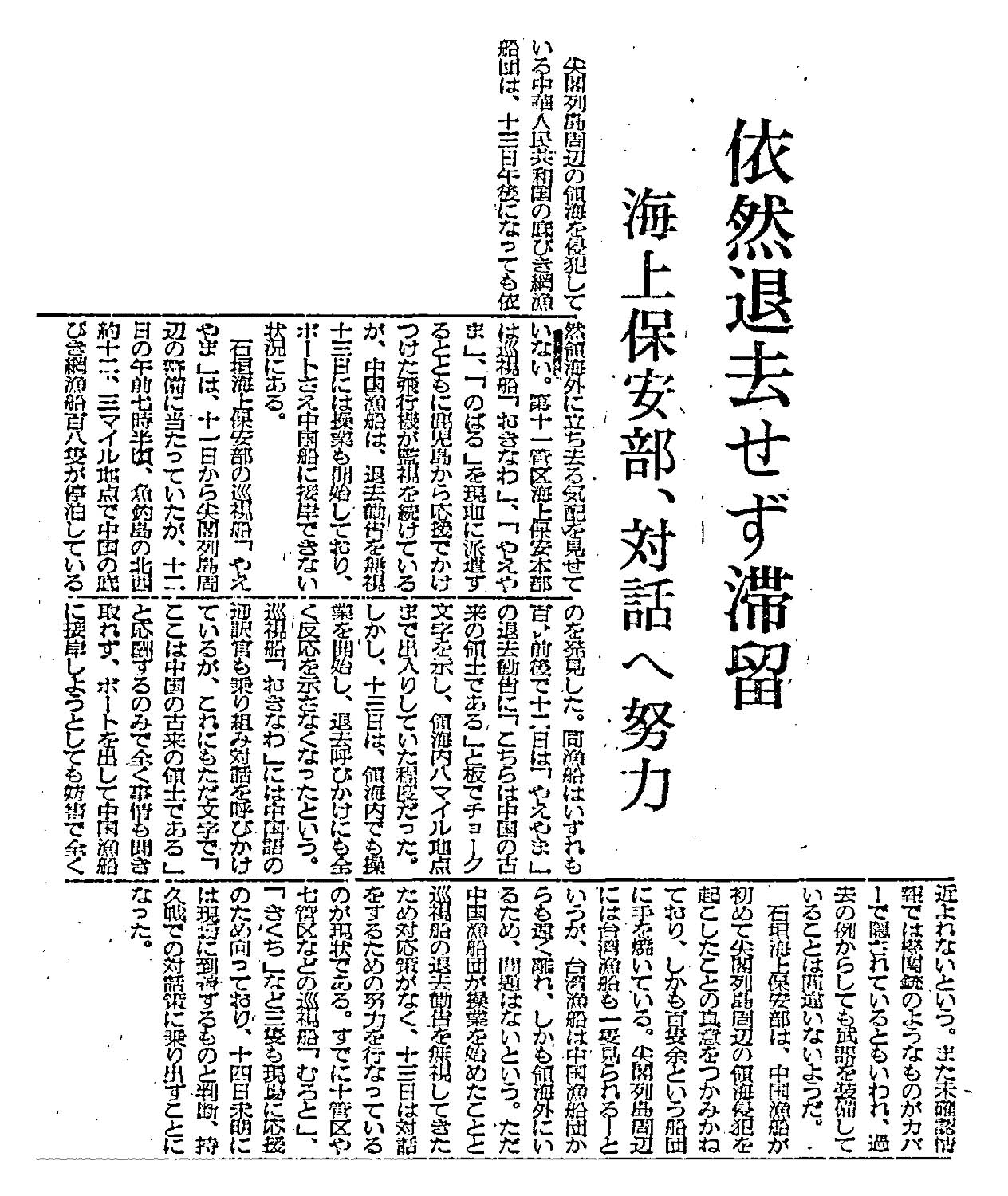 > 石垣海上保安部 尖閣列島周辺の領海を侵犯している中国漁船、依然退去せず滞留 K :