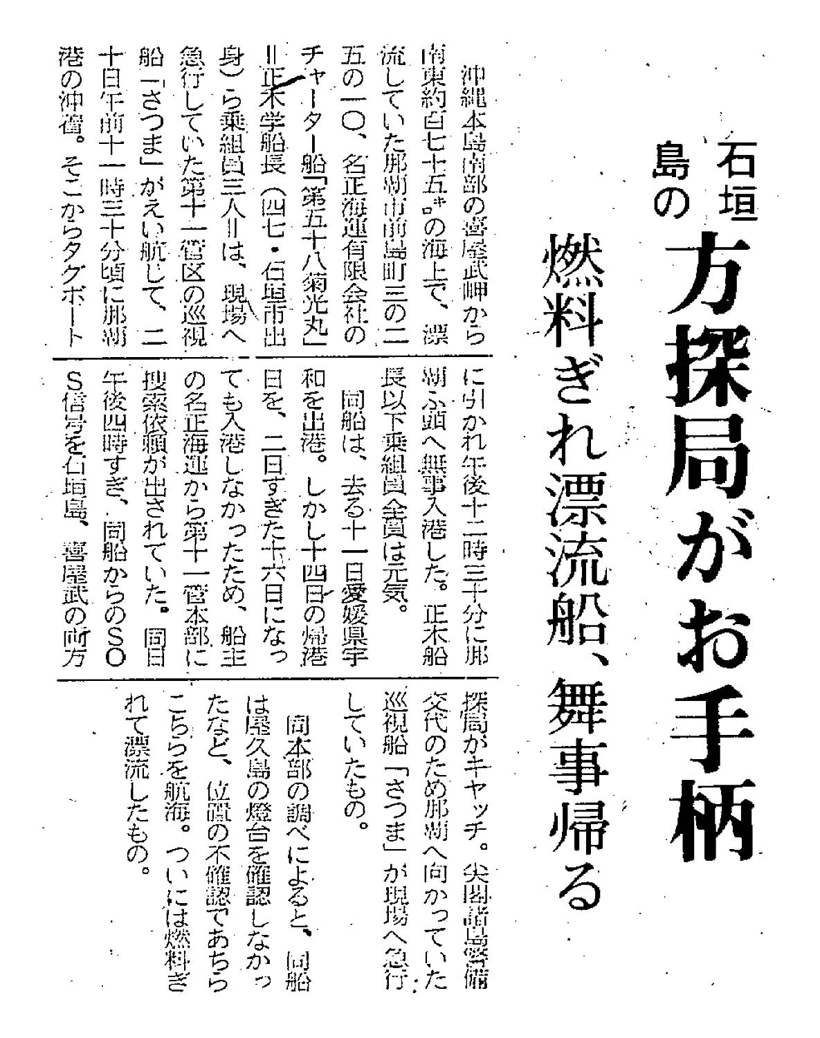 > 石垣島の方探局がお手柄/燃料ぎれ漂流船、無事帰る: