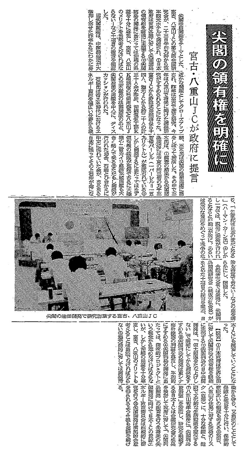 > 尖閣の領有権を明確に/宮古・八重山JC政府に提言: