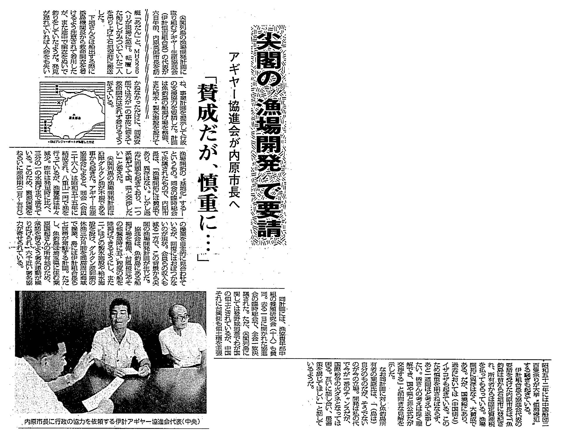 > 尖閣の’漁場開発’で要請/アギヤー協進会が内原市長へ/「賛成だが、慎重に・・・」: