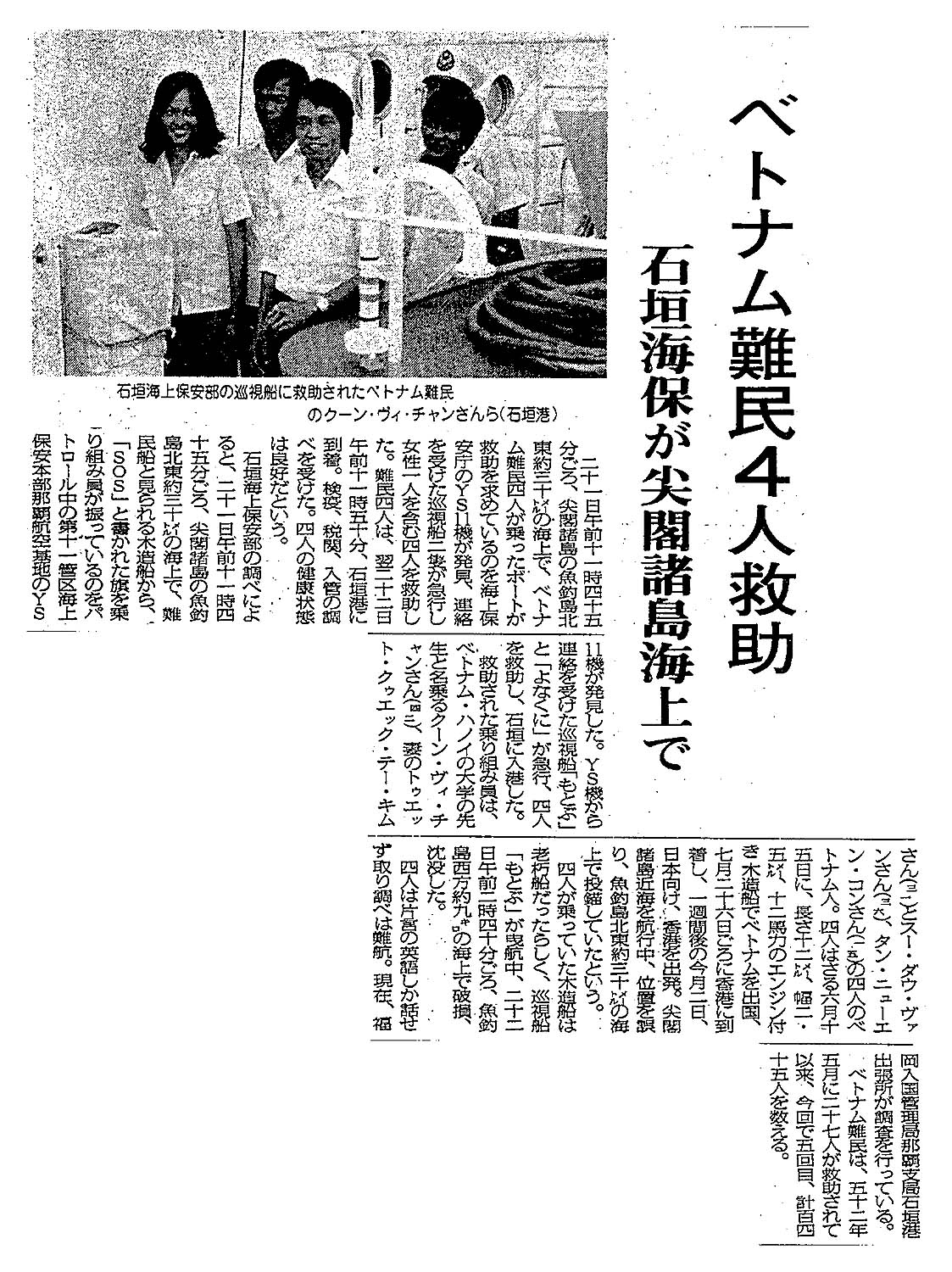 > ベトナム難民4人救助/石垣海保が尖閣諸島海上で: