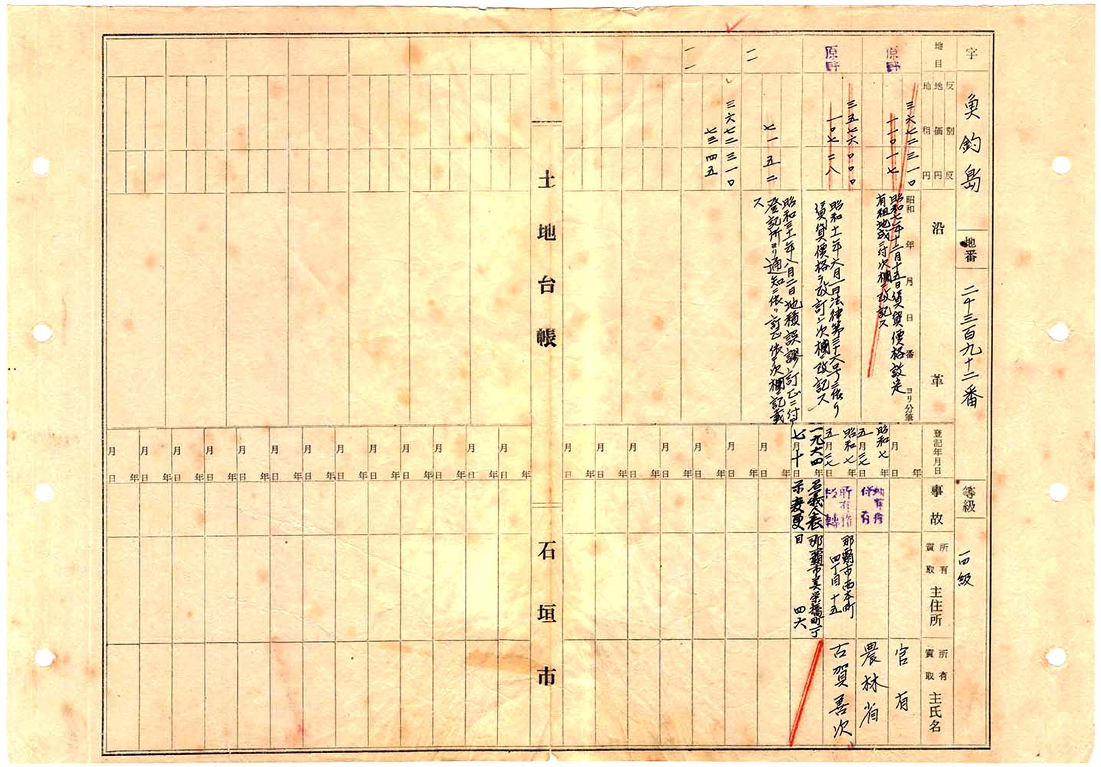 > 『土地台帳』(魚釣島) 昭和7年5月27日: