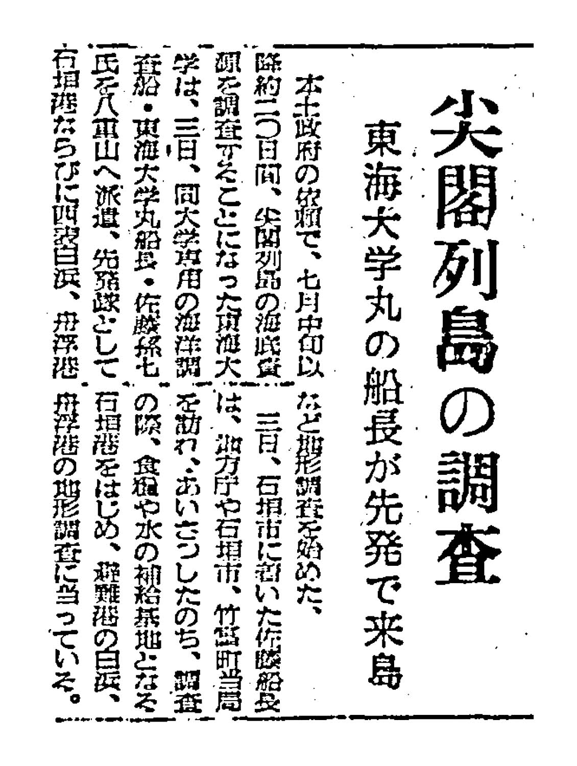 > 尖閣列島の調査/東海大学丸の船長が先発で来島: