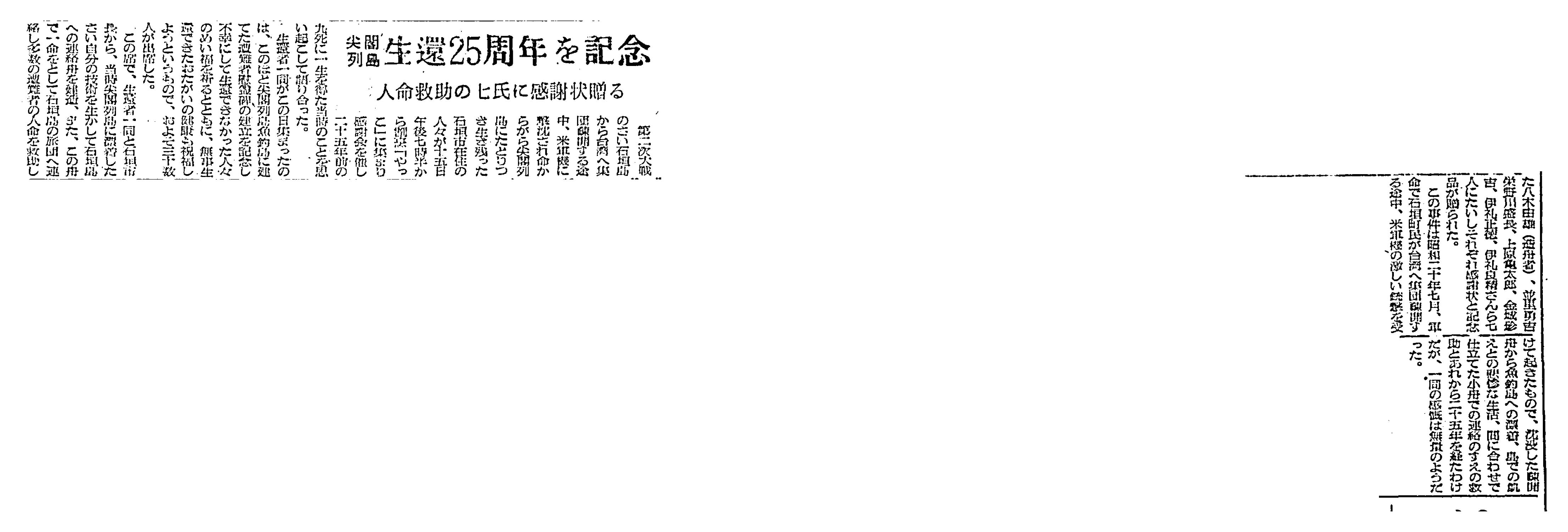 > 尖閣列島/生還25周年を記念/人命救助の匕氏に感謝状贈る:
