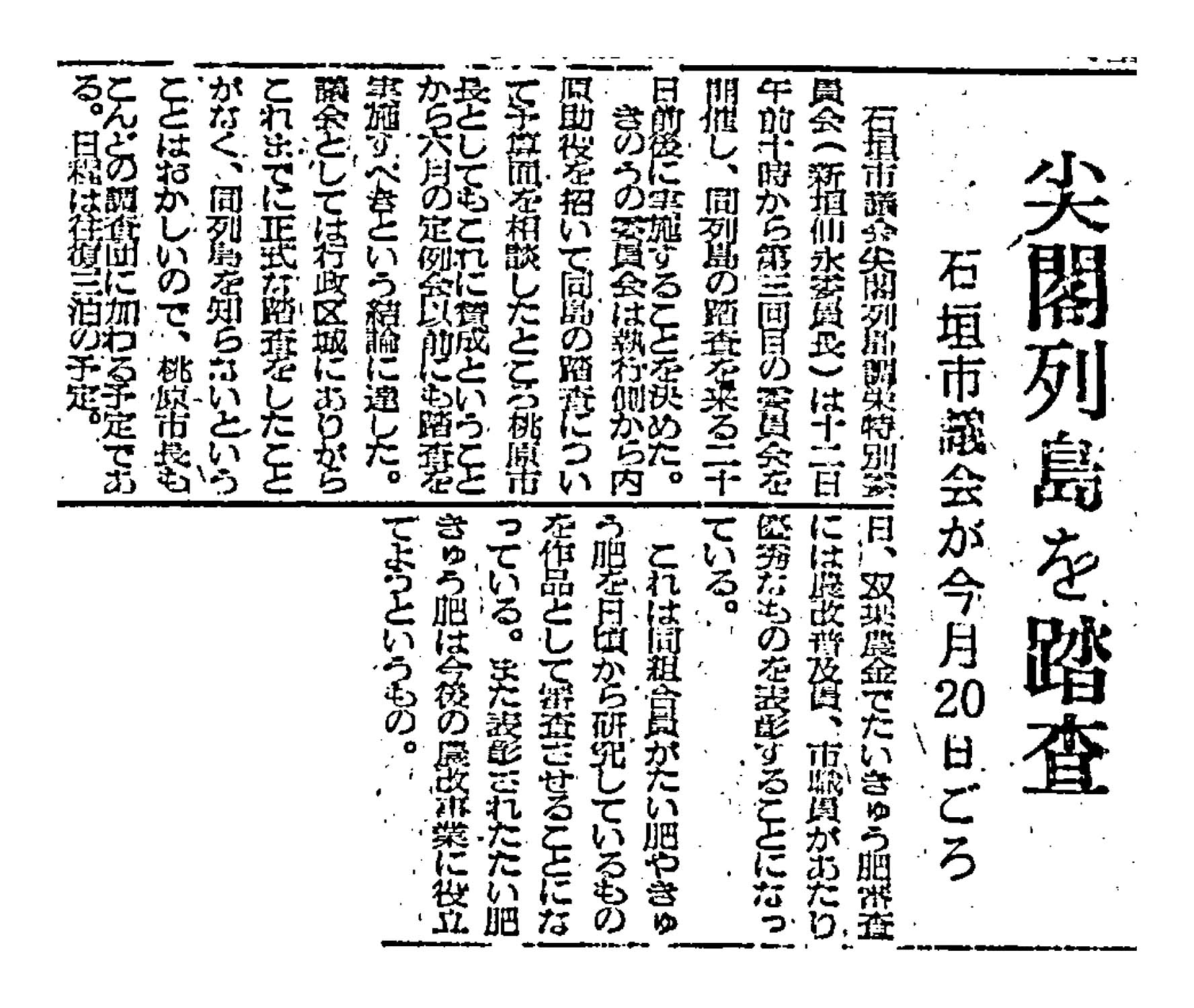 > 尖閣列島を踏査/石垣市議会が今月20日ごろ: