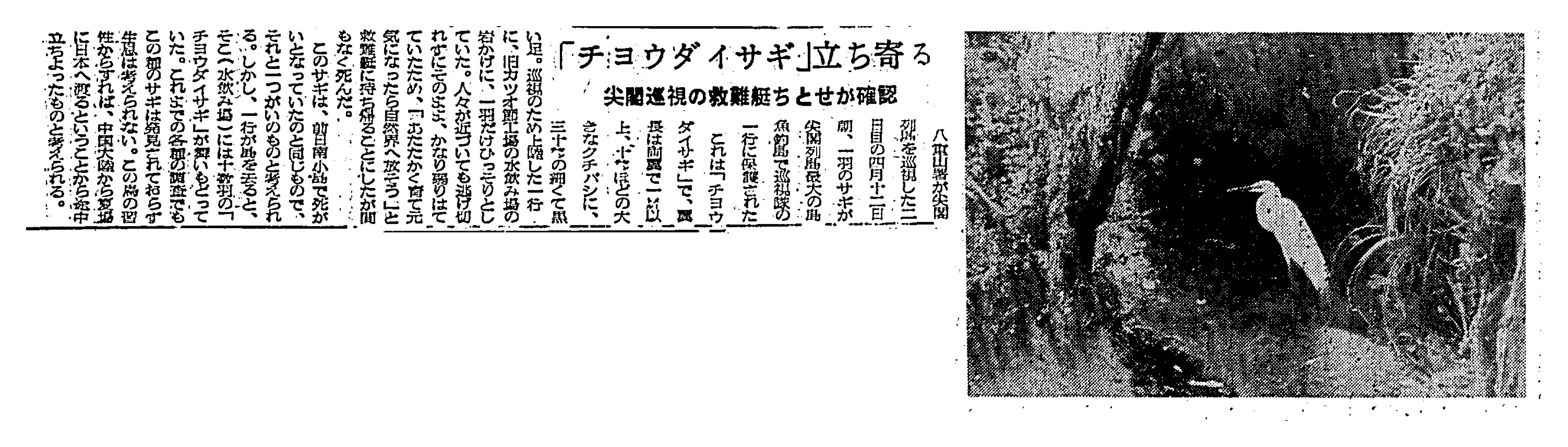 > 「 チョウダイサギ 」立ち寄る/尖閣巡視の救難艇ちとせが確認 :
