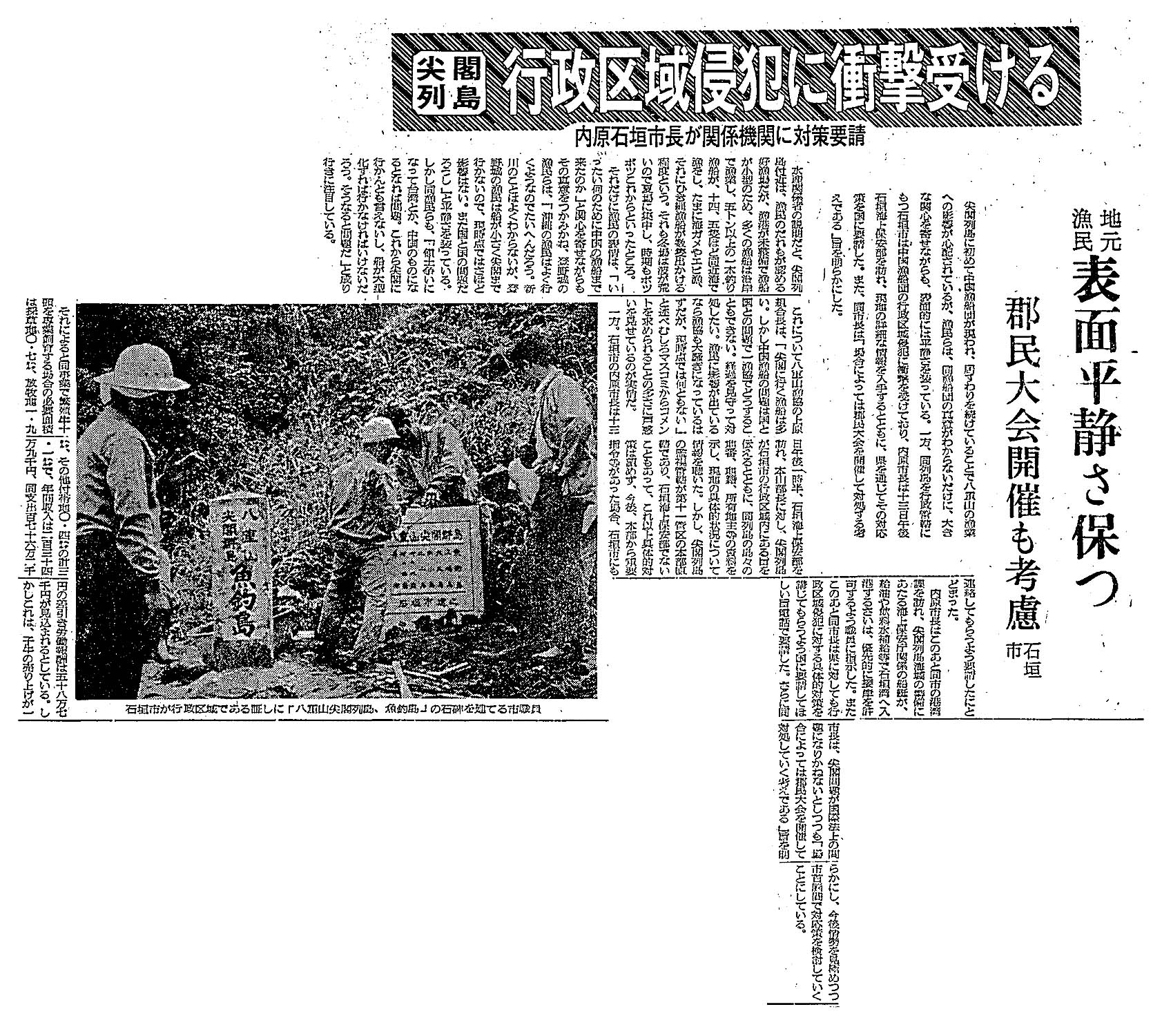 > 尖閣列島、行政区域侵犯に衝撃受ける 内原市長が関係機関に対策要請: