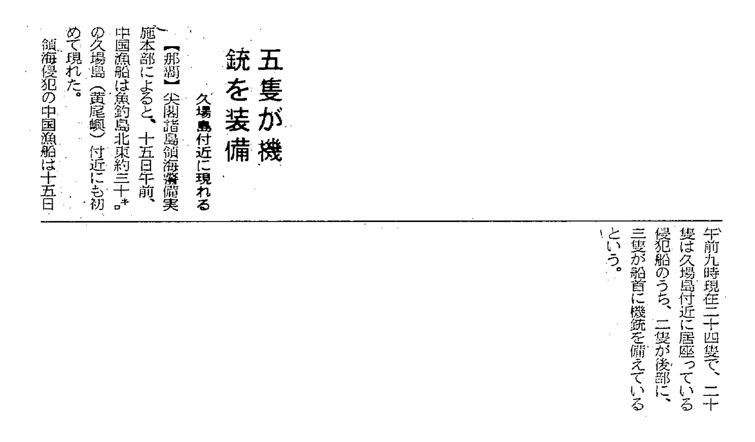 > 五隻が機銃を装備/久米島付近に現れる: