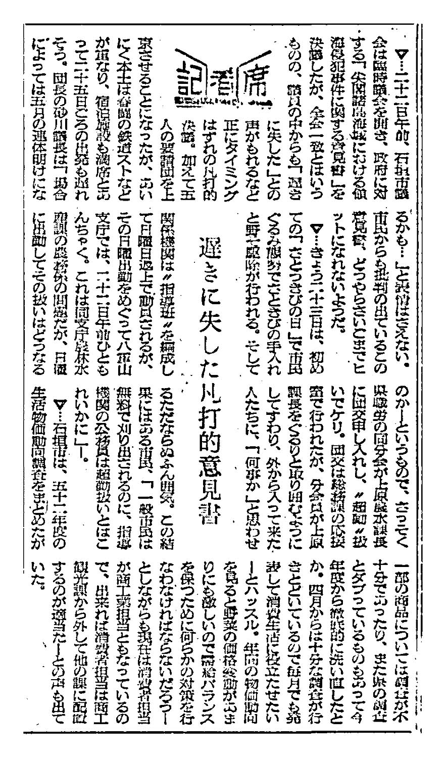 <記者席>遅きに失した凡打的意見書