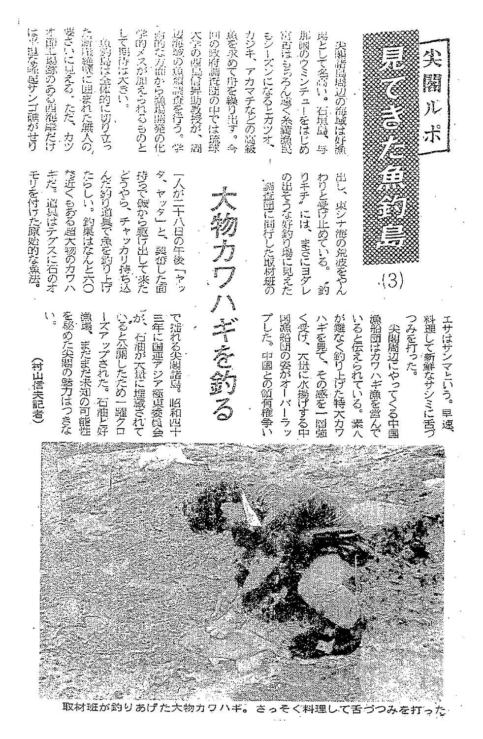 > <尖閣ルポ> 見てきた魚釣島(3) 大物カワハギを釣る: