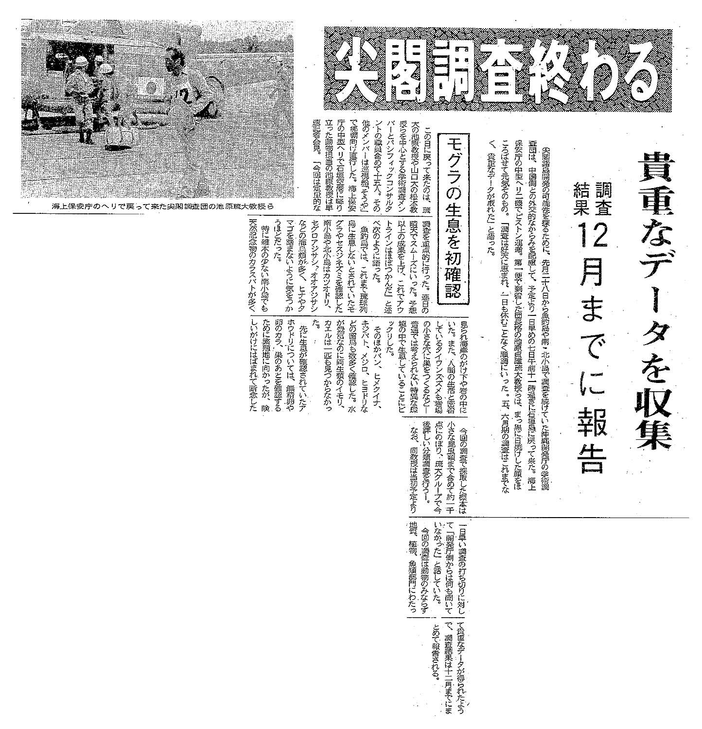 > 尖閣調査終わる/貴重なデータを収集/調査結果12月までに報告/モグラの生息を初確認: